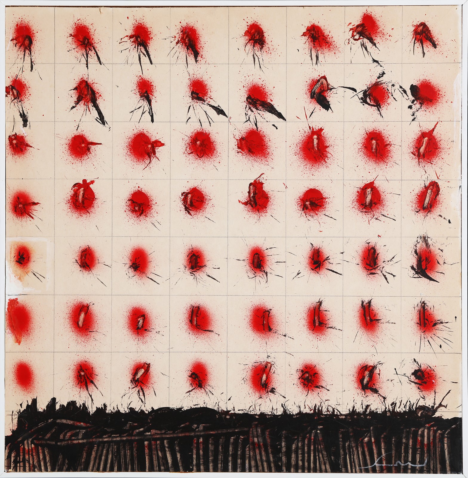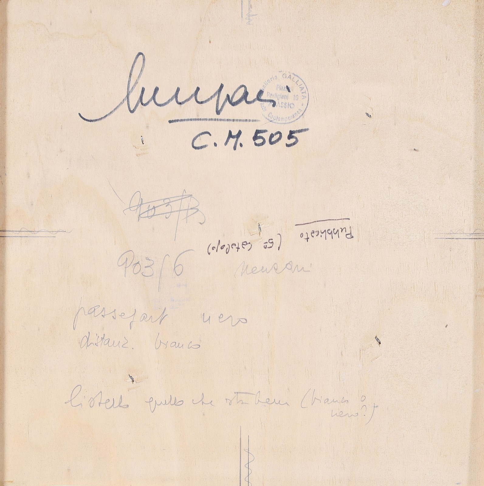 SCANAVINO EMILIO (1922 - 1986) Acryl 41. 1971. Mixed media on paper. Cm 40,00 x 40,00. Signature lower right. At the back Galliata Art Gallery, Alassio stamp. Publication: Scanavino's general catalog by Gorgina Scanavino and Carlo Pirovano, Electa edition, n.1971-224. Provenance: Regis Gallery, Finale Ligure. Small restoration lower left. Cornice presente