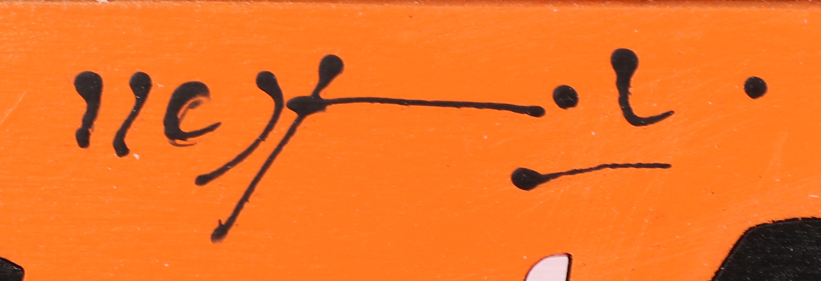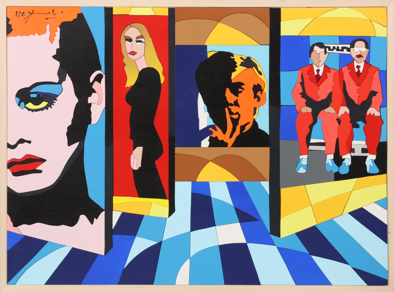NESPOLO UGO (n. 1941) Golden age. Acrilico su tavola. Cm 40,00 x 30,00. Firma in alto a sinistra. Al retro titolo e anno.Autentica dell'artista su fotografia. Entro teca di plexiglass. Cornice presente