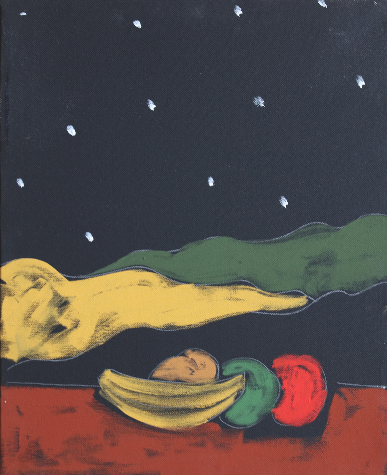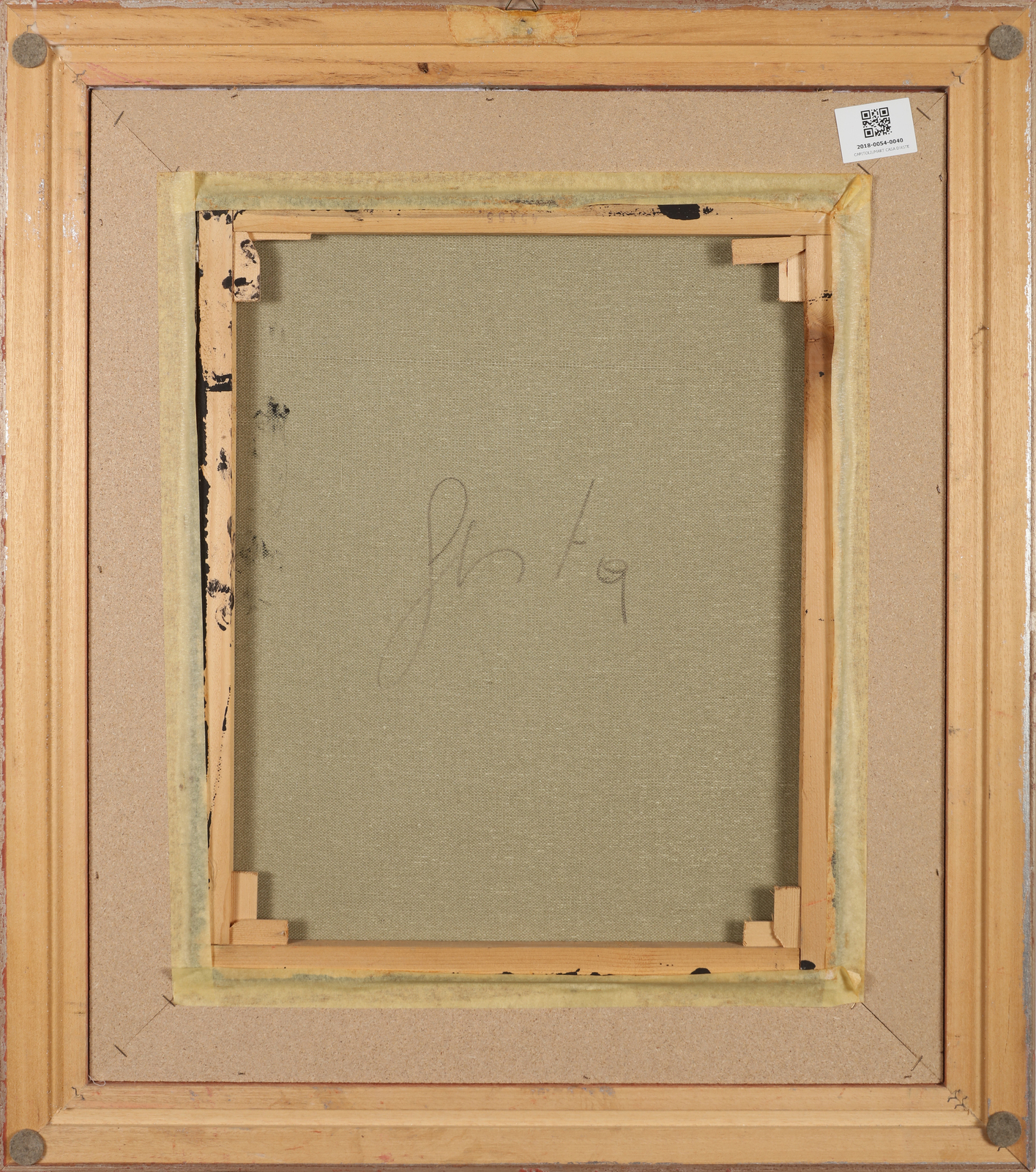 FESTA TANO (1938 - 1988) Senza titolo. Acrilici su tela . Cm 45,00 x 55,00. Firma al retro. Opera archiviata presso l'Archivio Tano Festa - Studio Soligo, Roma come da documentazione fotografica allegata all'opera riportante il relativo numero d'inventario. . Cornice presente