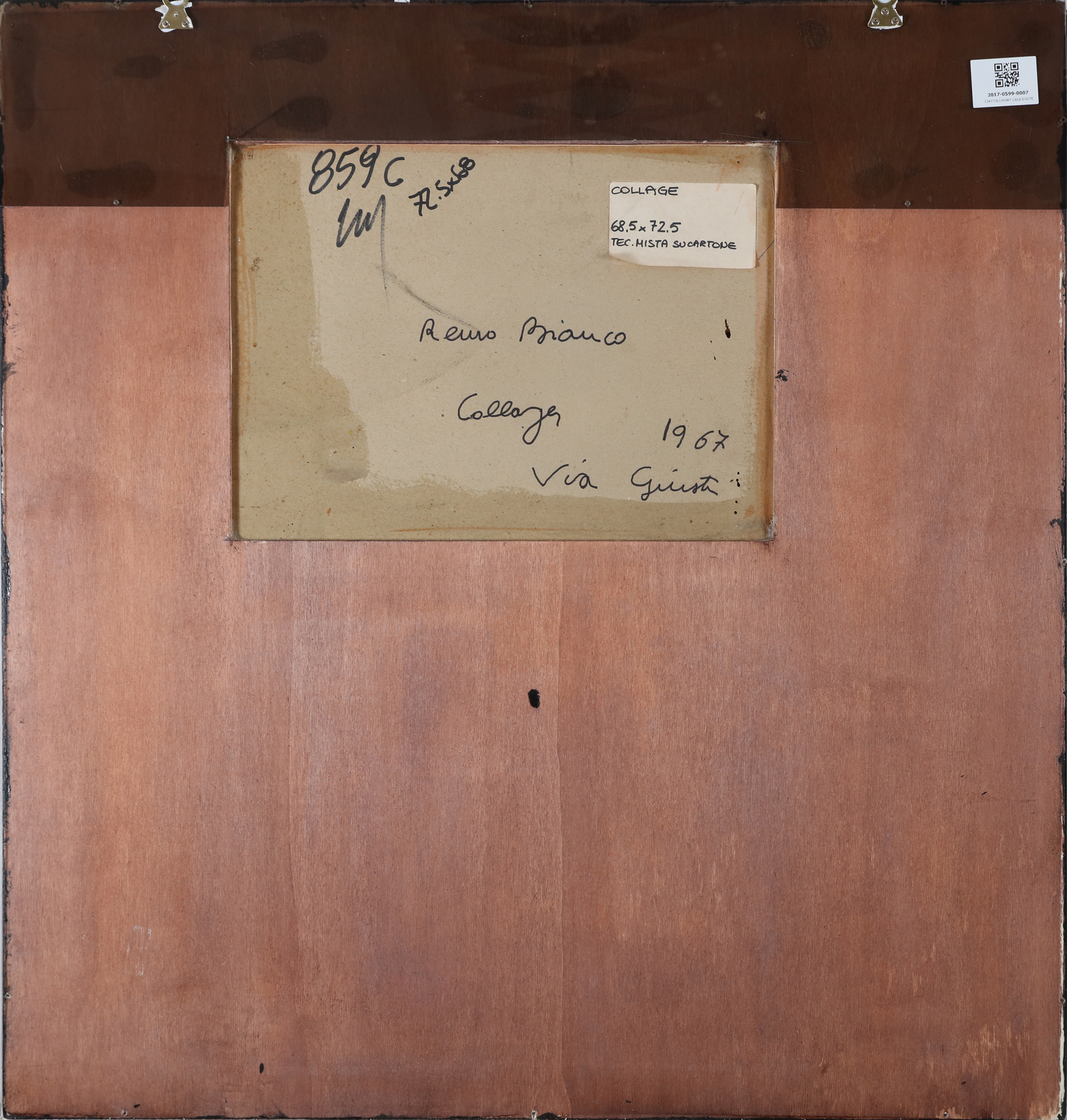 BIANCO REMO (1922 - 1990) Untitled. 1967. Collage on cardboard. Cm 68,00 x 73,00. At the back signature and year. Remo Bianco Fondation, Milan authenticity certificate. Within plexiglass case.. Cornice presente