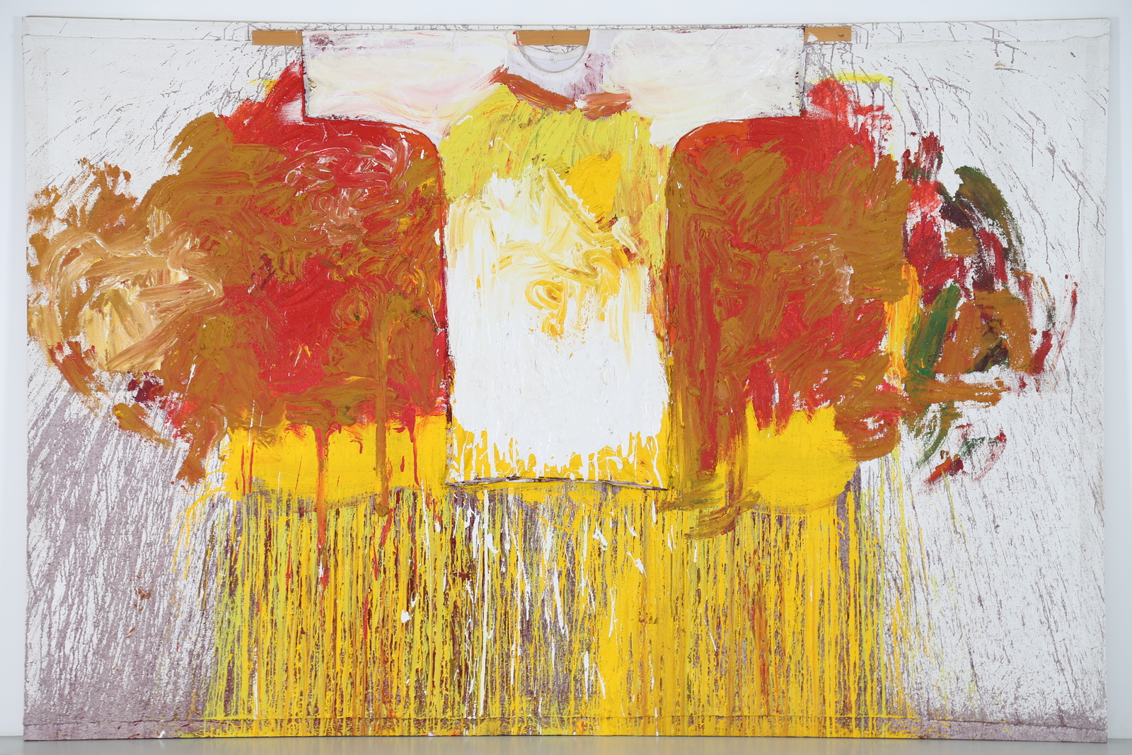 NITSCH HERMANN (n. 1938) Raoul/05. 2005. Tecnica mista su tela. Cm 300,00 x 200,00. Autentica dell'artista su fotografia. Firma e anno al retro.