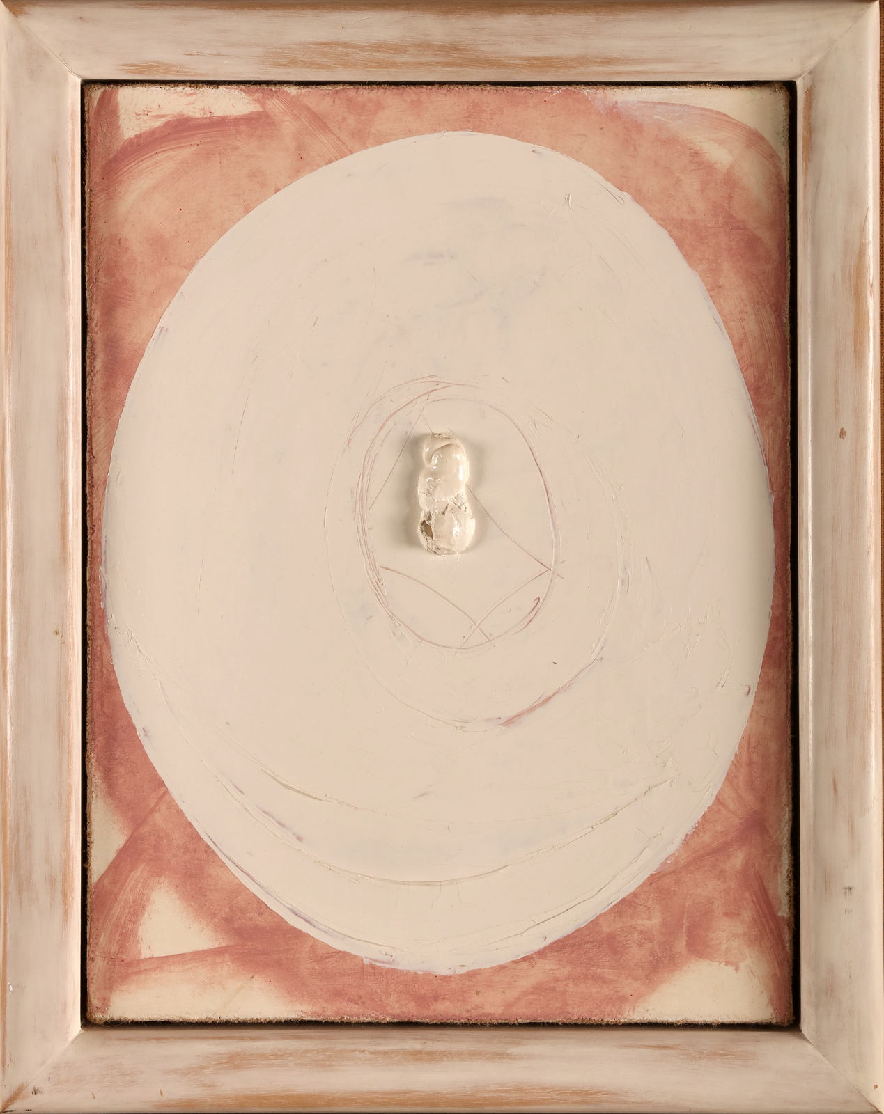 DESSI' GIANNI (n. 1955) Seed. 1994. Mixed media on canvas. Cm 30,00 x 40,00. At the back title, signature, year and Alberto Valerio Art Gallery, Brescia label. Alberto Valerio Art Gallery, Brescia authenticity certificate. Cornice presente