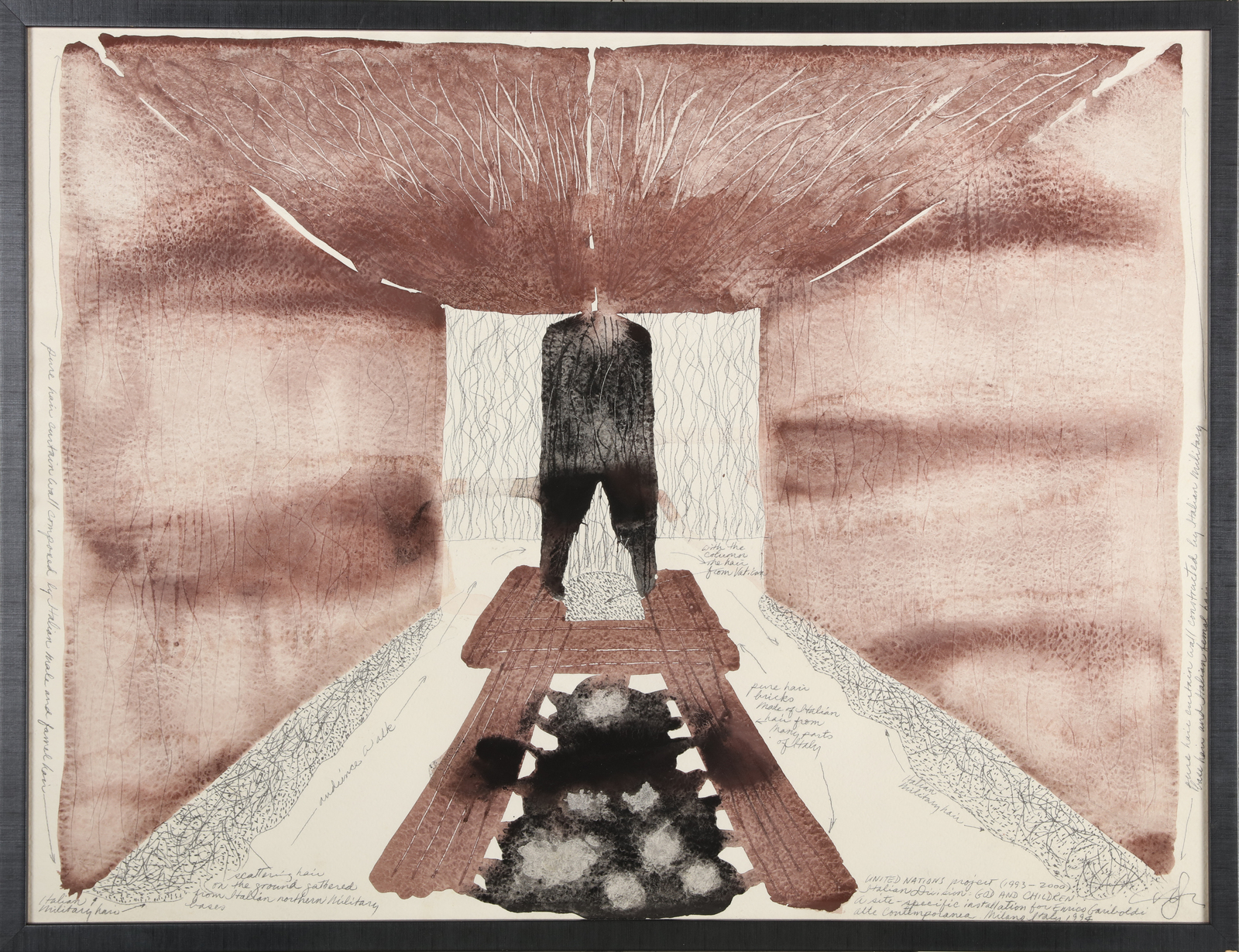 WENDA GU (n. 1955) United nations project (1993 - 2000). Tecnica mista su cartoncino. Cm 70,00 x 50,00. Firma e titolo in basso a destra. . Cornice presente