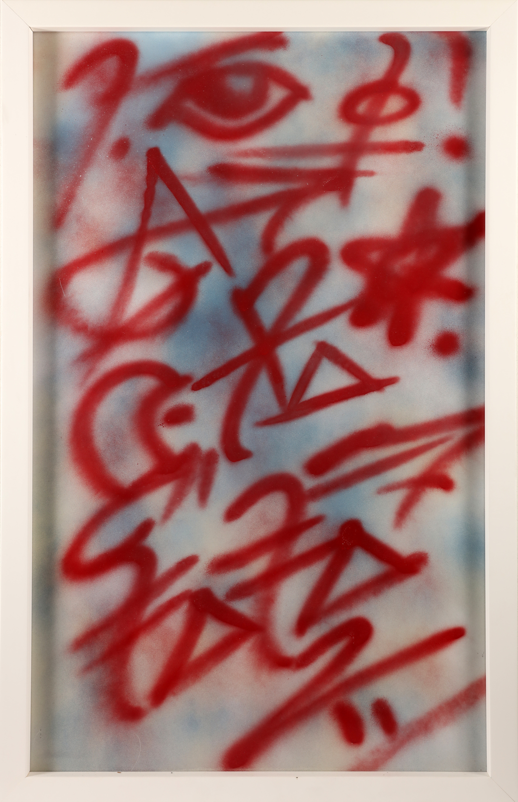 PHASE 2 (n. 1958) Senza titolo. Spraypaint su lamina. Cm 64,00 x 100,00. Provenienza: Associazione culturale Stradedarts, Milano. Cornice presente