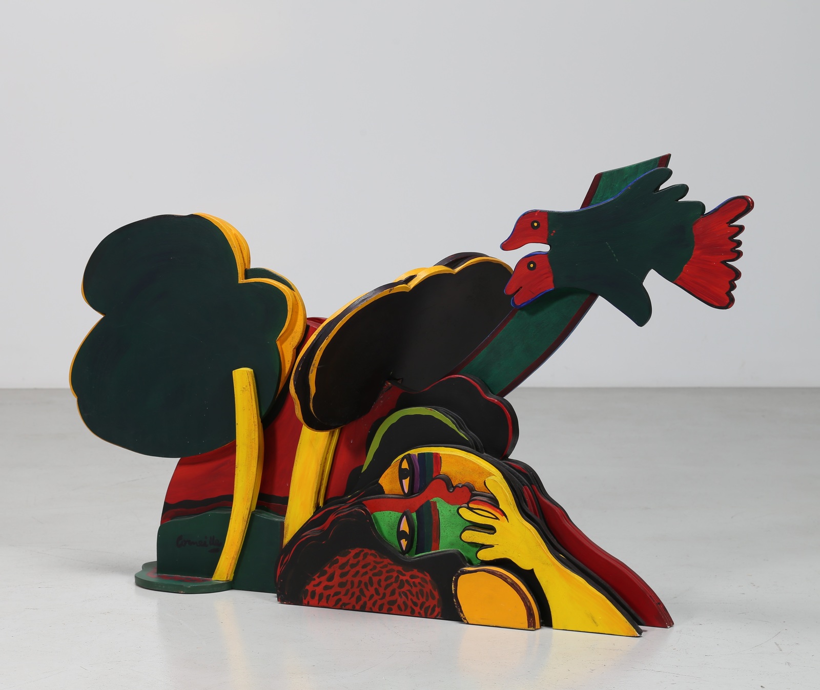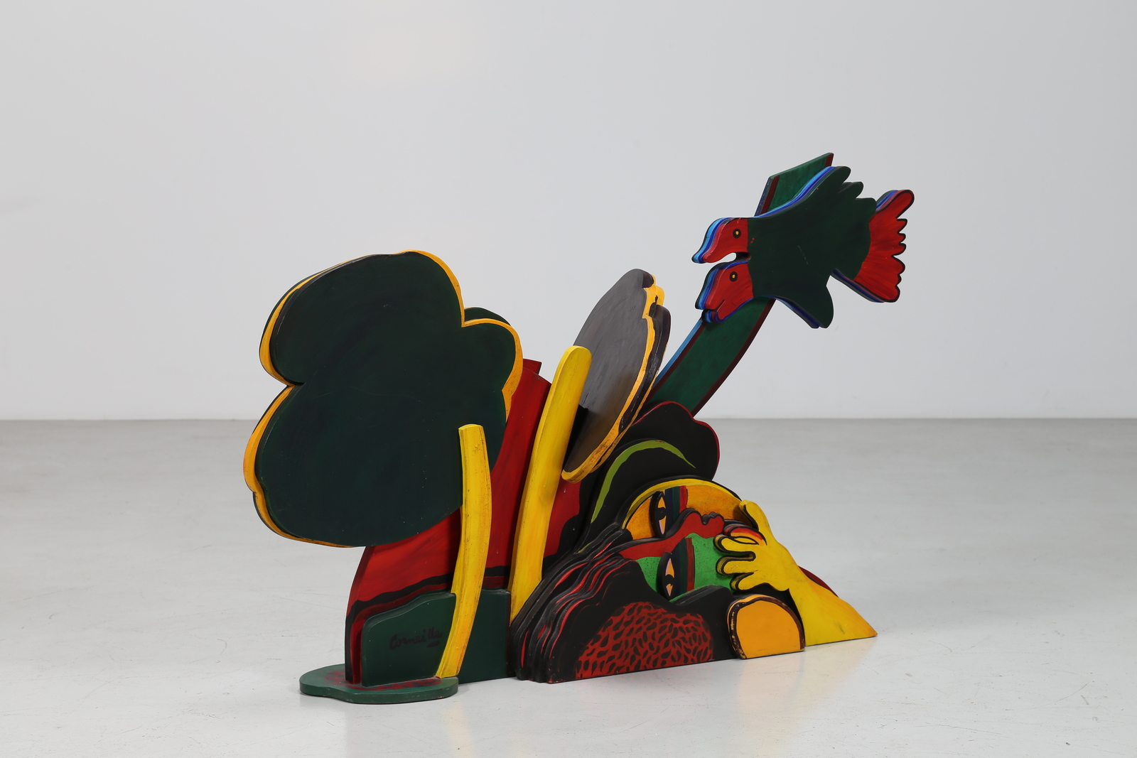 CORNEILLE (1922 - 2010) Untitled. 1993. painted wood. Cm 130,00 x 80,00 x 50,00. I/IV. Edition lower and signature upper left. Guillaume Corneille Foundation, Bruxelles authenticty certificate.
