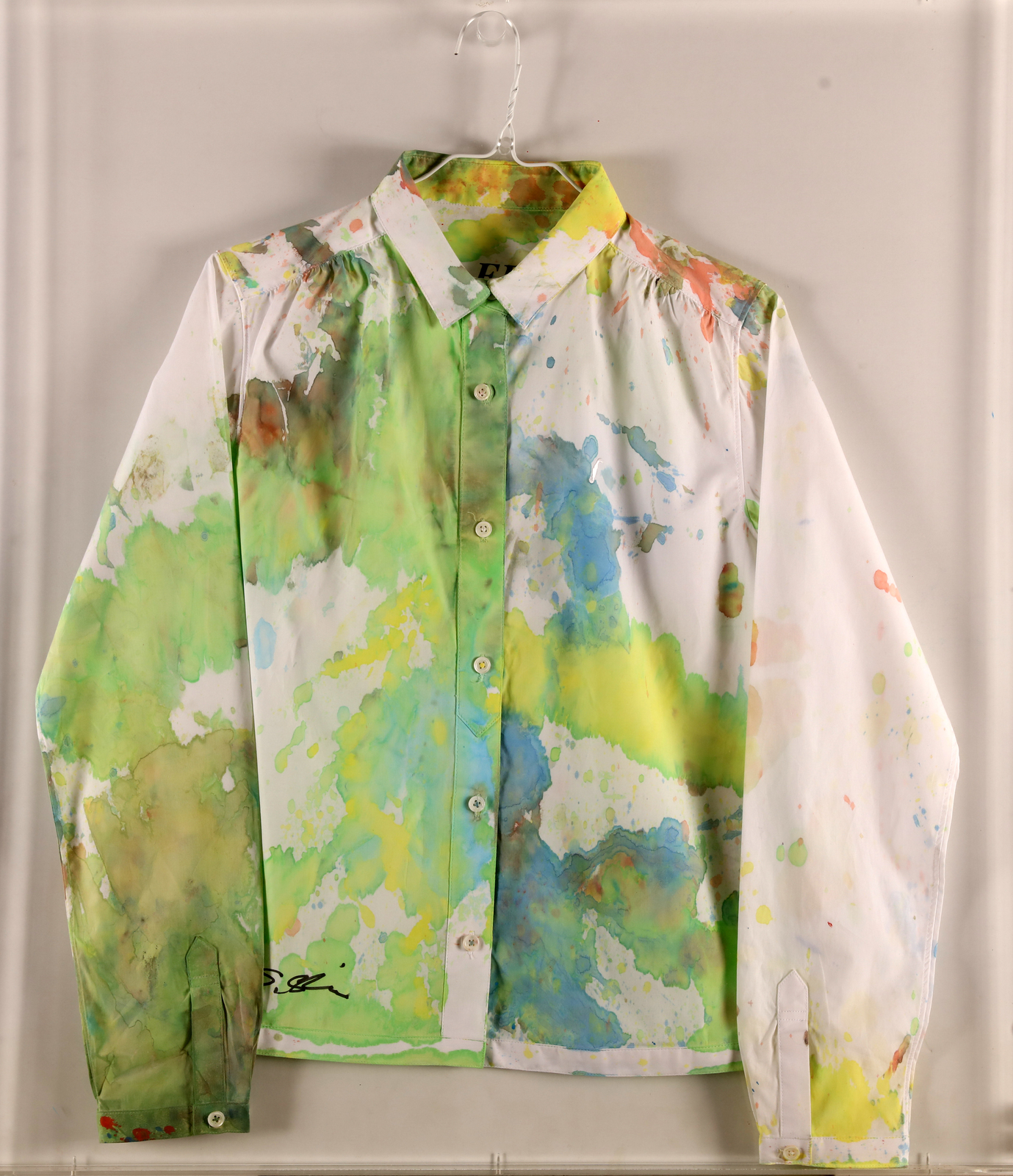 SHIMAMOTO SHOZO (1928 - 2013) Felissimo 038. 2007. Acquarello su tela. Cm 64,00 x 62,00. Firma in basso a sinistra. Opera contenuta in teca plexiglass. Pubblicazioni: Shozo Shimamoto Samurai, acrobata dello Spazio, Skira, p.98.