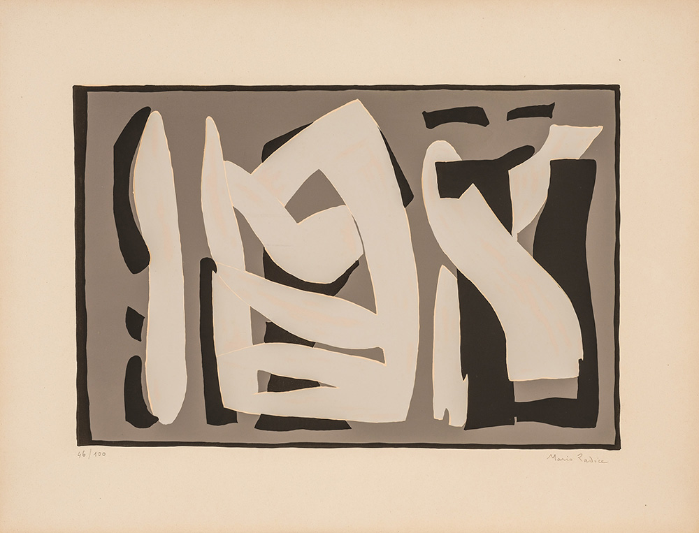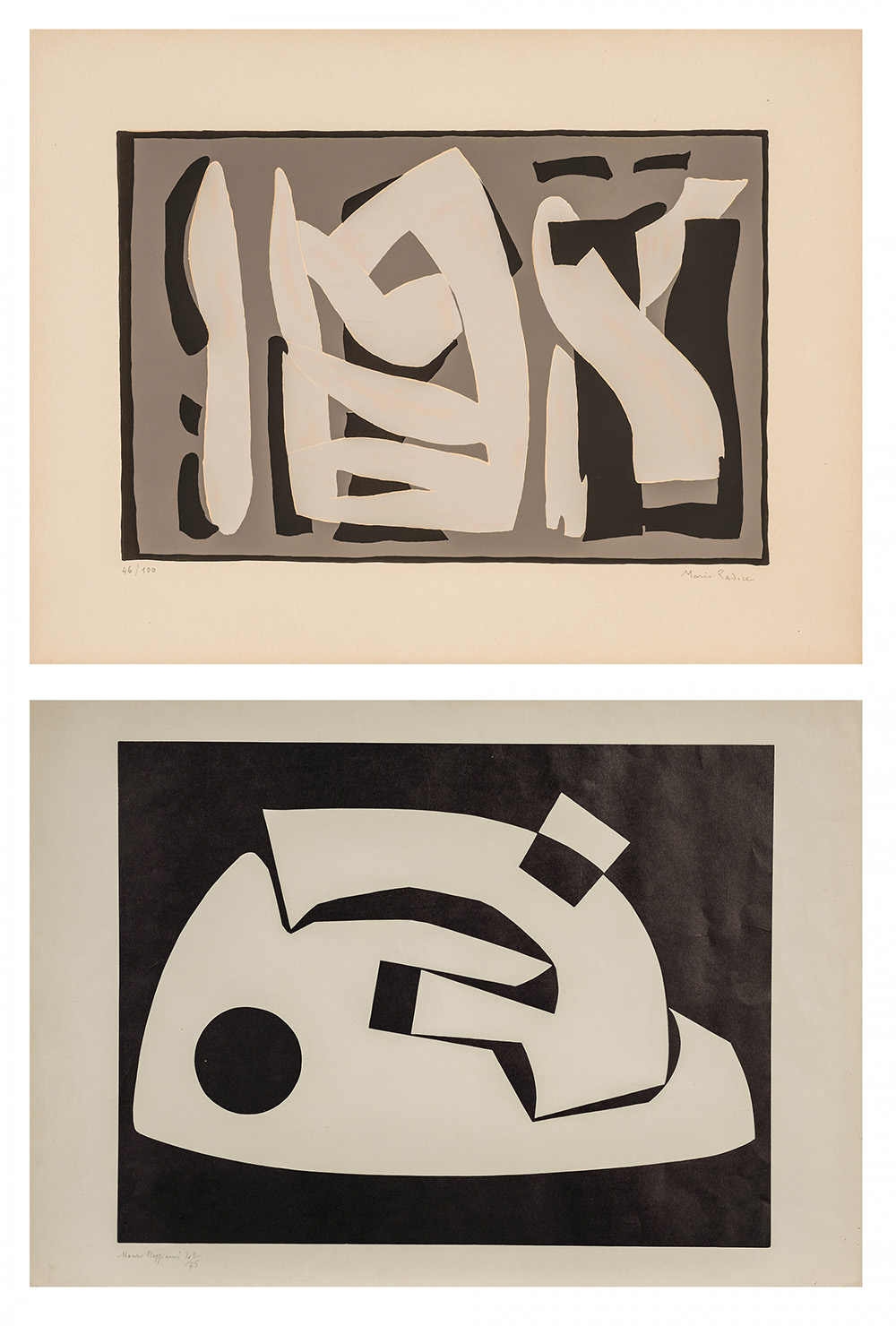 LOTTO DI 2 OPERE MARIO RADICE - MAURO REGGIANI MARIO RADICE Senza titolo Multiplo, litografia, cm. 49 x 64 Opera n. 46/100 Firmato in basso a destra Timbro Art Club, Roma sul retro Prov. Collezione Privata MAURO REGGIANI Senza titolo Multiplo litografia, cm. 49 x 69,5 Opera n. 40/75 Firmato in basso a sinistra La carta presenta delle pieghe e piccoli strappi in prossimità del bordo Prov. Collezione Privata