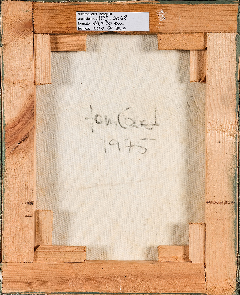JORRIT TORNQUIST 1938 Senza titolo, 1975 Olio su tela, cm. 30 x 24 Firmato e datato sul retro Etichetta dell’artista sul retro Autentica dell’artista su fotografia Prov. Collezione Privata