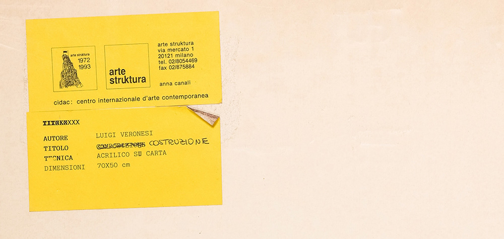 LUIGI VERONESI 1908 - 1988 Costruzione, 1986 Acquerello su carta, cm. 56,5 x 38 Firmato e datato in basso a destra Etichetta Arte Struktura, Milano sul retro Prov. Collezione Privata