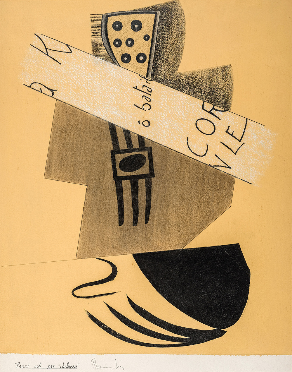 ALDO MONDINO 1938 - 2005 Pezzi noti per chitarra Tecnica mista su carta, cm. 72 x 56 Firmato in basso a sinistra Prov. Collezione Privata