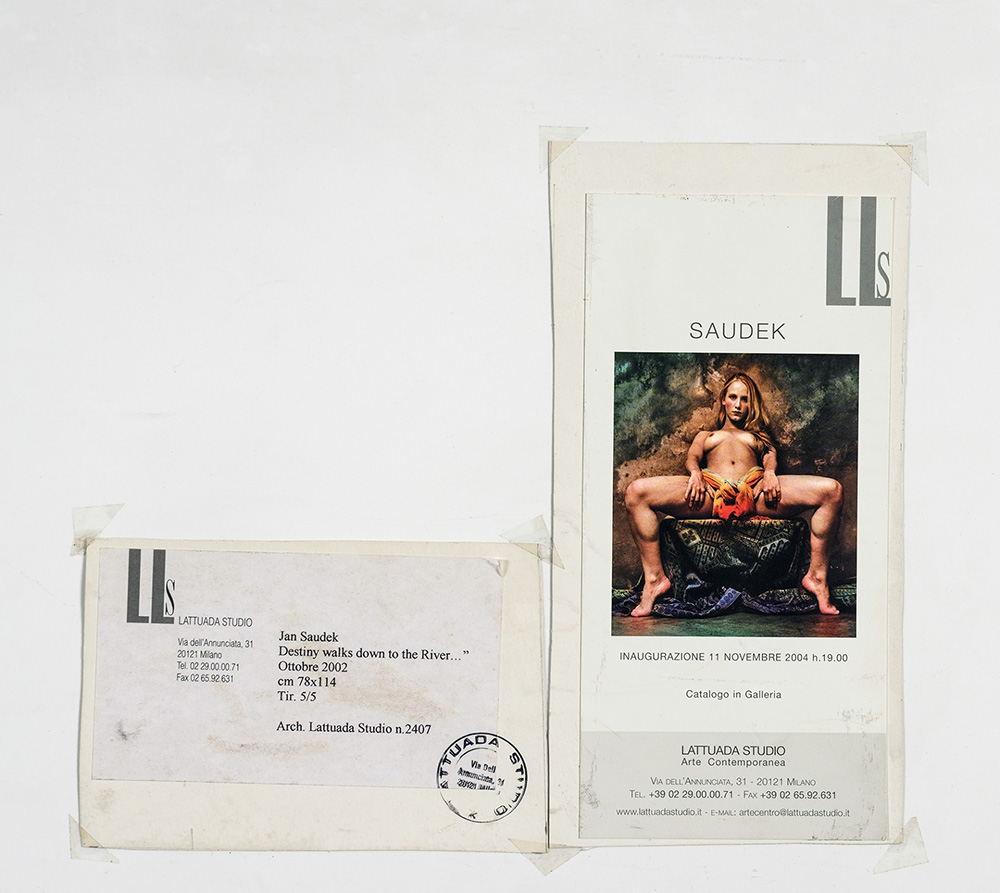 JAN SAUDEK 1935 Destiny walks down to the River carrying two innocent children…, 2002 Fotografia a colori, cm. 81 x 115 Opera n. 5/5 Etichetta e Timbro Lattuada Studio, Milano sul retro ESPOSIZIONI: “Saudek”, Lattuada Studio, Milano, 2004 Prov. Collezione Privata