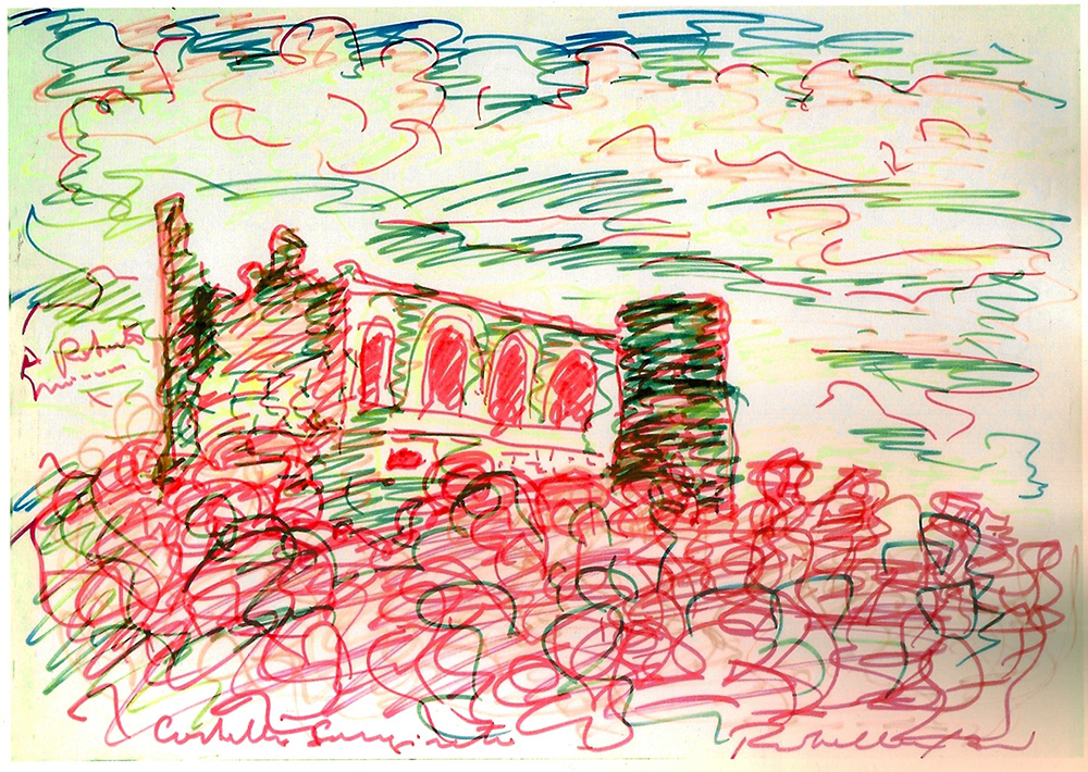 Mimmo Rotella castello san giusto pennarello su carta 33,8x48 anno 1980