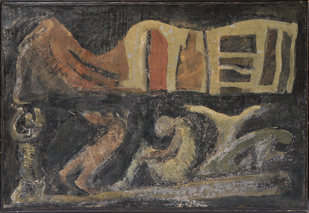 Mario Sironi olio e tempera su carta intelata composizione su fondo nero 45,5x66 Archivio Sironi
