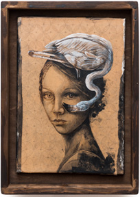 Lotto 124 | Niko D'Accolti fenicottero bianco pirografia, china e fori, su carta...