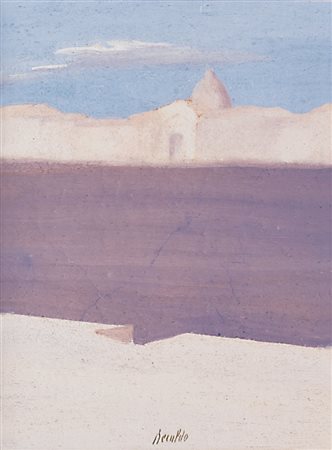 FRANCO BERALDO Meolo (Ve) 1944 Paesaggio affresco su tela cm. 40x30, firma in basso al centro, firma ed etichetta dell'artista al retro, dichiarazione d'autenticità e archivio dell'artista su foto, certificato della Telemarket (BS) allegato.