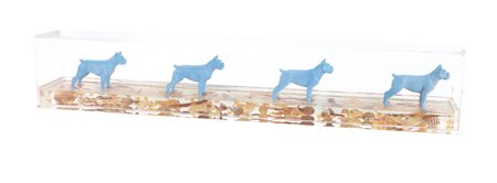 WILLIAM SWEETLOVE Ostenda (Belgio) 1949 Four cloned blue bulls, 2006 plastica e resina epossidica cm. 17x91x11, opera non firmata, entro teca in plexiglass, pubblicato su "Cracking Art Revolution", Edizioni Skira (MI), 2007, a cura di Piero Adorno, Claude Lorent e Francesco Santaniello, pagina 130.