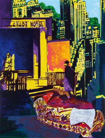 GIANGIACOMO SPADARI San Marino 04/04/1938 - Milano 21/04/1997 Sigmund Freud indaga, 1994 acrilico su cartone cm. 66x50, firma, titolo, anno e dedica dell'artista al retro.