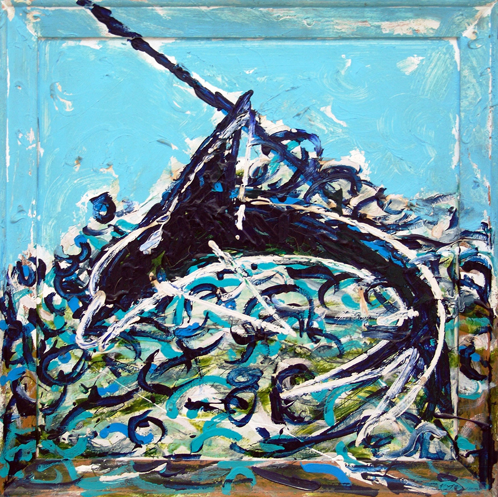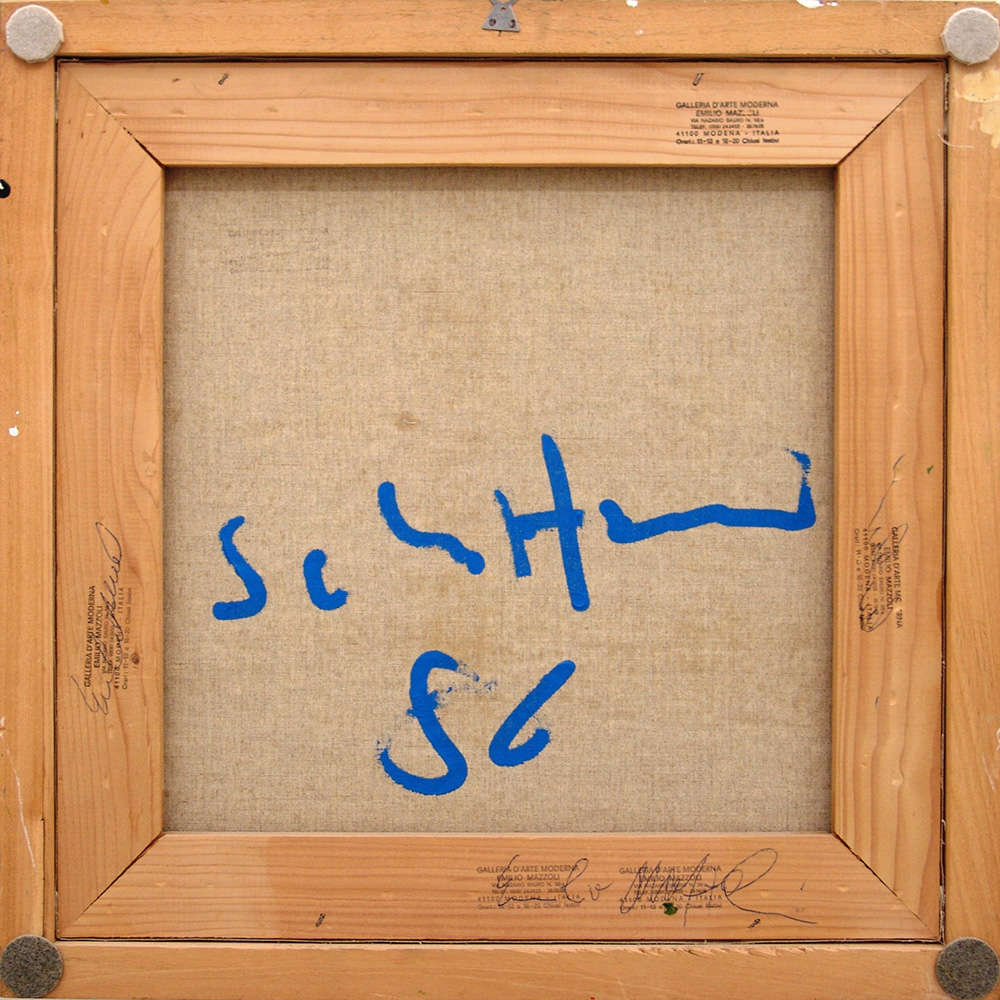 Mario Schifano 1934, Homs (Libia) - 1998, Roma (Rm) - [Italia] senza titolo acrilico e smalto su tela e cornice 57,5x57,5 cm 1986 firma dell'artista sul retro certificato di autenticità su fotografia della Galleria Emilio Mazzoli di Modena firmato dall'artista