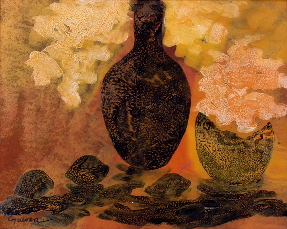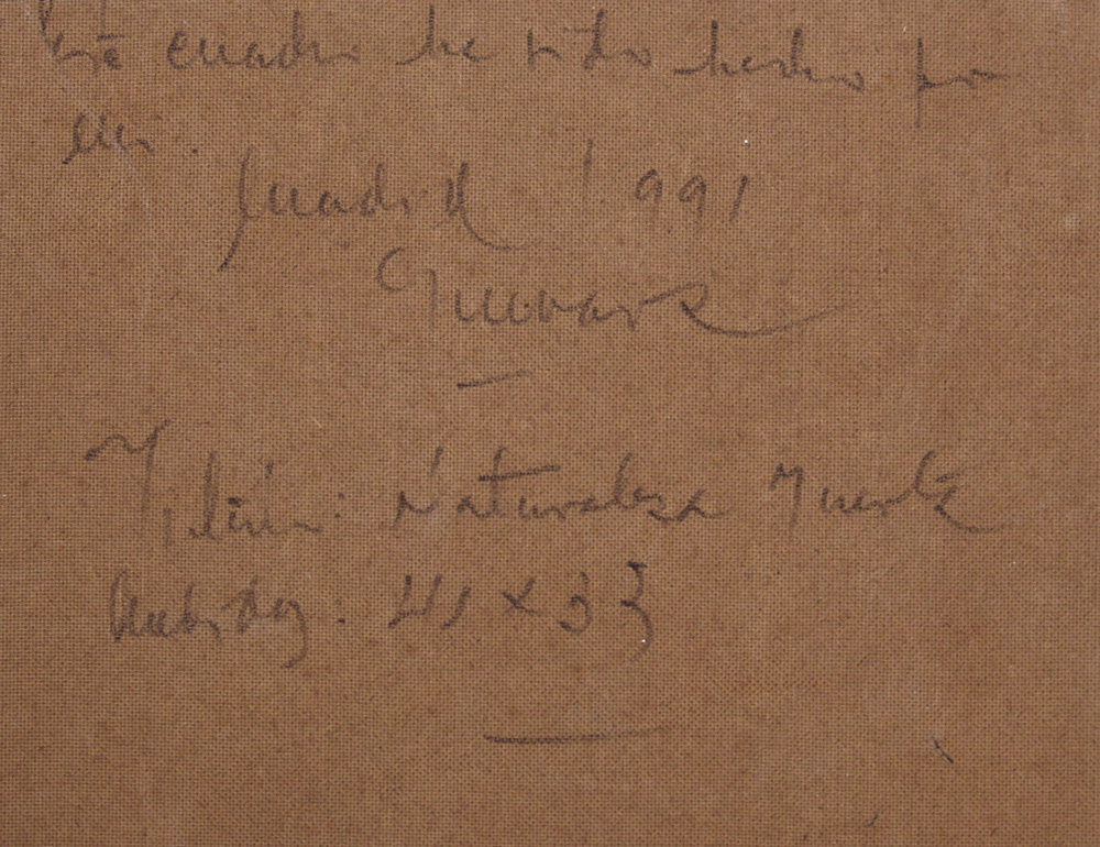 Jose Guevara 1926, Huelva (Spagna) - 2010, Huelva (Spagna) - [Spagna] Naturaleza muerta olio su faesite 33x41 cm 1991 firma dell'artista in basso a sinistra e sul retro; opera con cornice certificato di autenticità del prof. Armando Ginesi