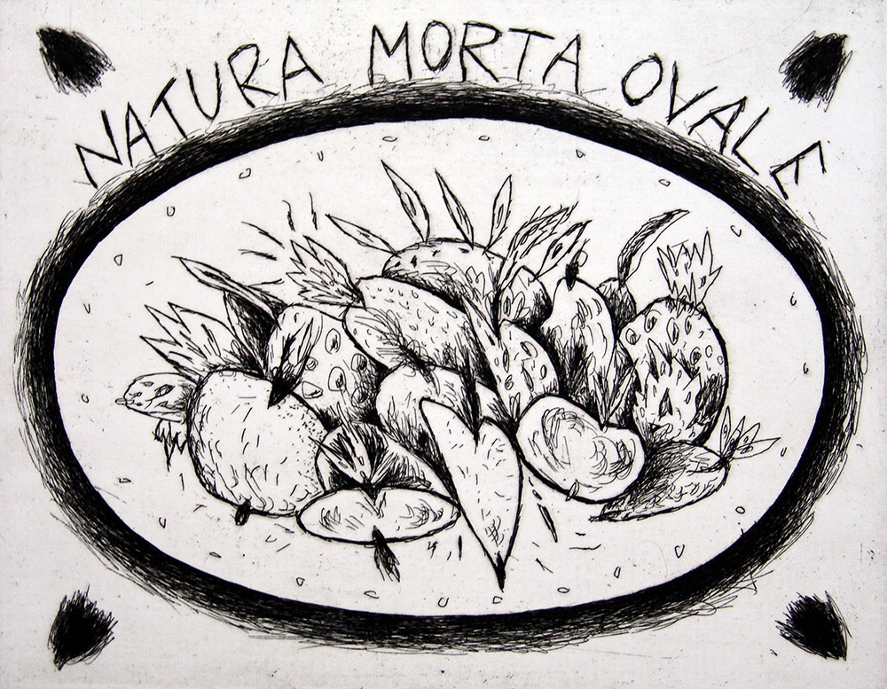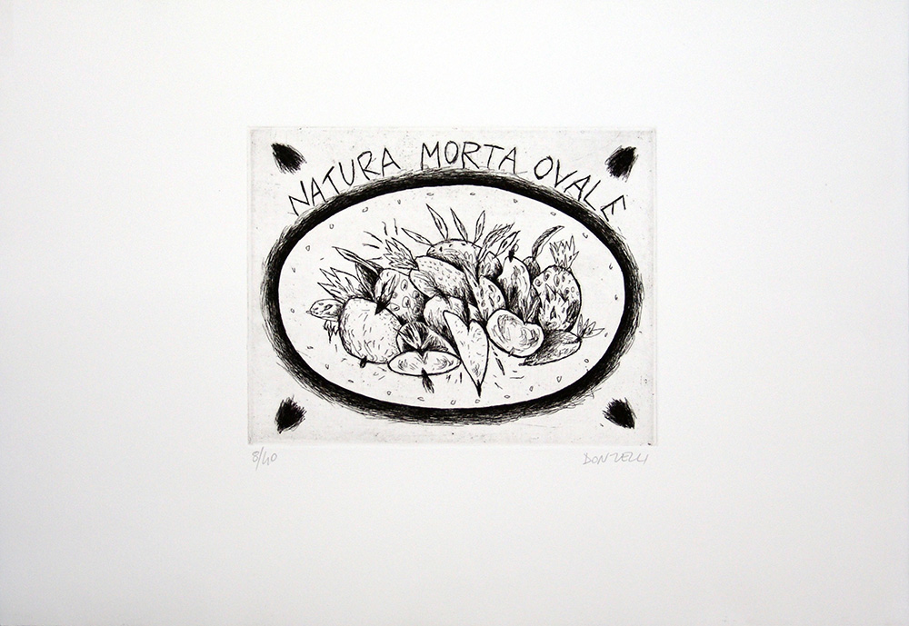 Bruno Donzelli 1941, Napoli (Na) - [Italia] Natura morta ovale acquaforte 50x70 cm es. 8/40; firma dell’artista a destra certificato di autenticità Picenum