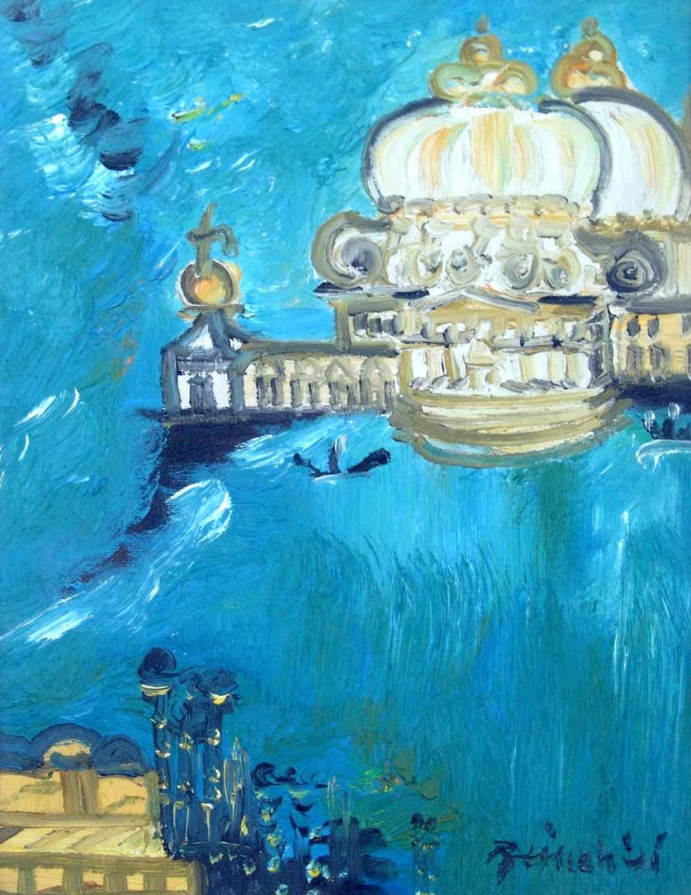 Remo Brindisi 1918, Roma (Rm) - 1996, Lido di Spina (Fe) - [Italia] Venezia olio su tela 40x30 cm firma dell'artista in basso a destra e sul retro; opera con cornice certificato di autenticità dell’artista su fotografia con numero di archiviazione della Galleria Pace di Milano