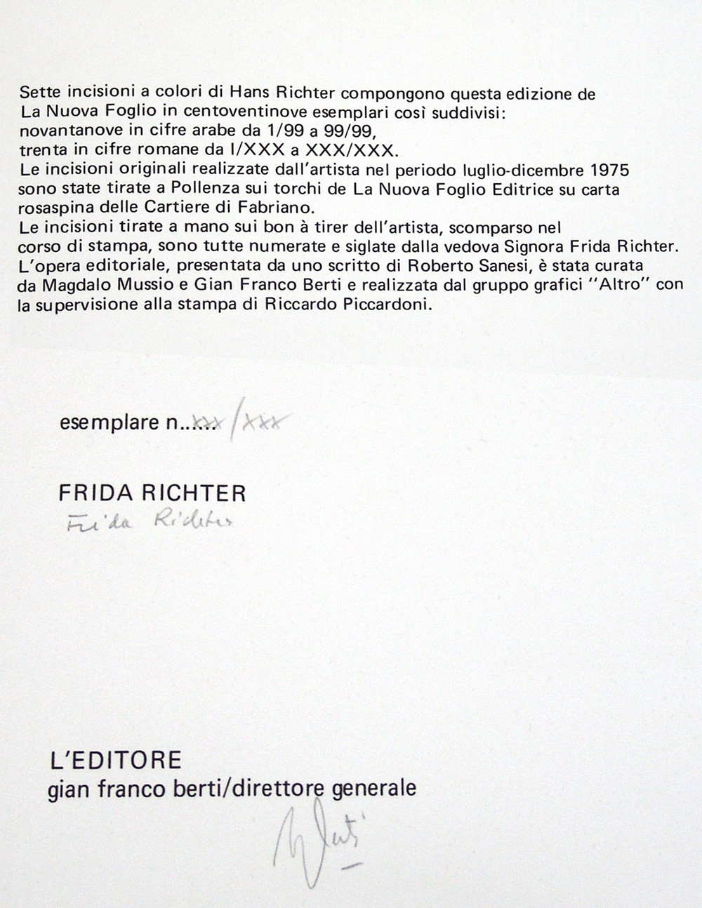 Hans Richter 1888, Berlino (Germania) - 1976, Locarno (Svizzera) - [Germania] Les planches de la mer et de l'amour acquaforte 50x35 cm cad. 1976 es. XXX/XXX; n. 7 acqueforti firmate a mano da Frida Richter; edizione La Nuova Foglio di Macerata certificato di autenticità Picenum