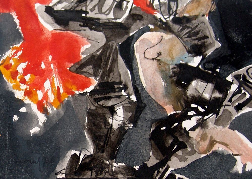 Philippe Artias 1912, Feurs (Francia) - 2002, Numana (An) - [Francia] senza titolo acquerello su carta applicata su tela 54x37 cm 1966 firma dell'artista in basso a sinistra certificato di autenticità Picenum