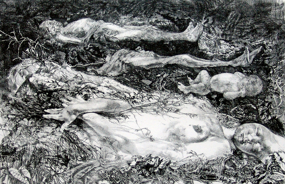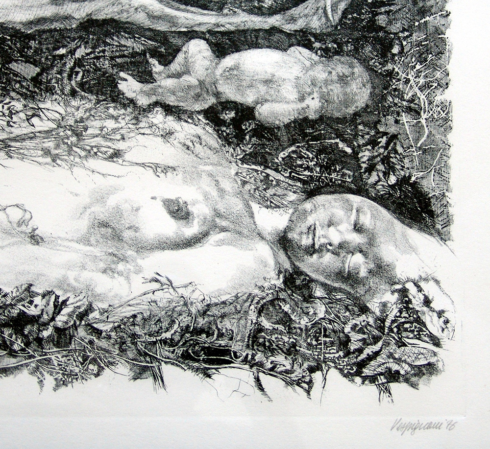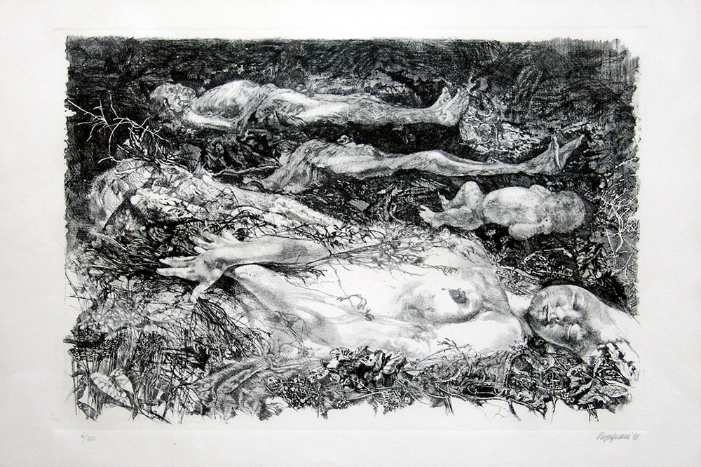 Renzo Vespignani 1924, Roma (Rm) - 2001, Roma (Rm) - [Italia] senza titolo acquaforte 50x70 cm 1976 es. 6/100; firma dell'artista in basso a destra; opera con cornice certificato di autenticità Picenum