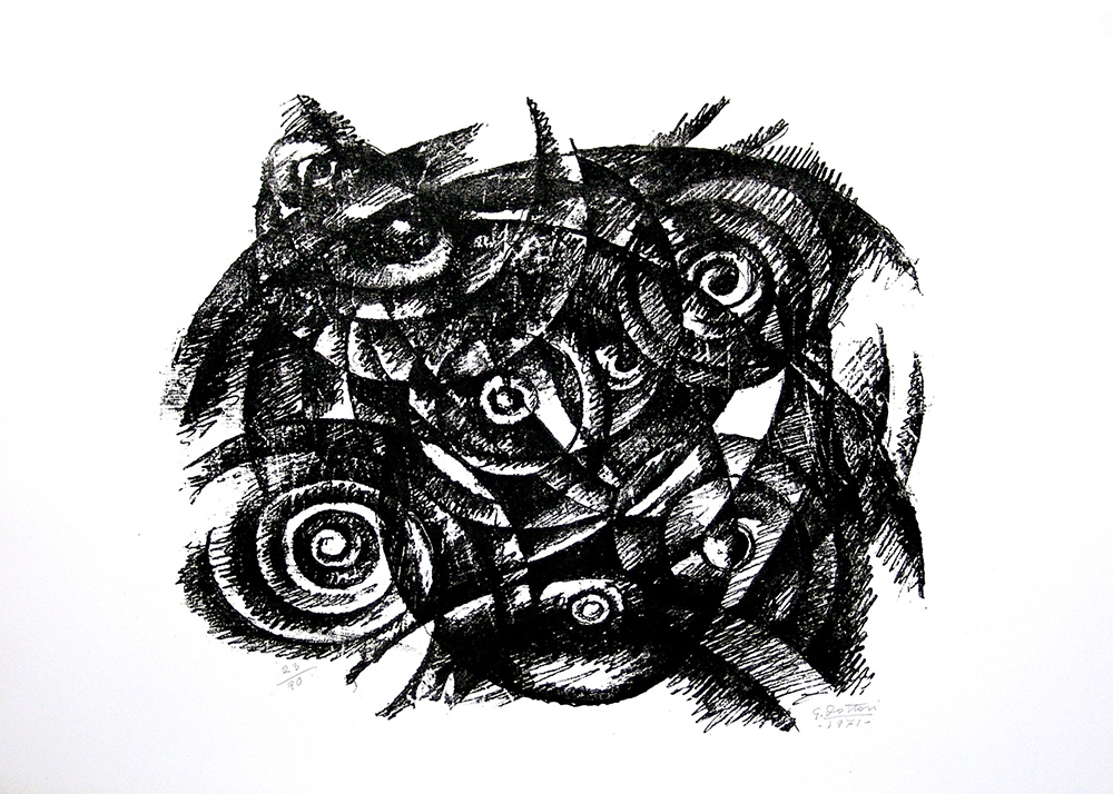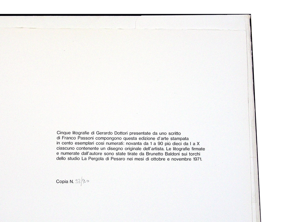 Gerardo Dottori 1884, Perugia (Pg) - 1977, Perugia (Pg) - [Italia] senza titolo litografia 50x70 cm cad. 1971 es. 23/90; n. 5 litografie firmate a mano dall’artista; editozione La Pergola di Pesaro, a cura di Franco Passoni certificato di autenticità Picenum