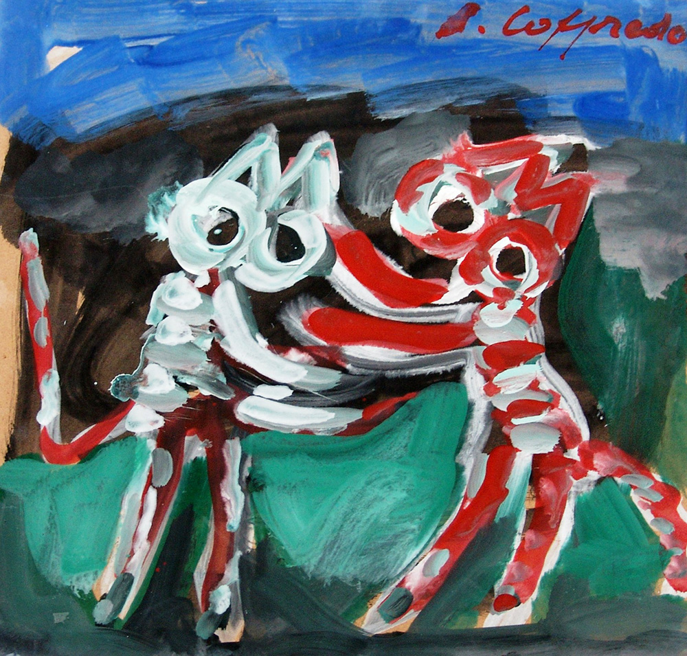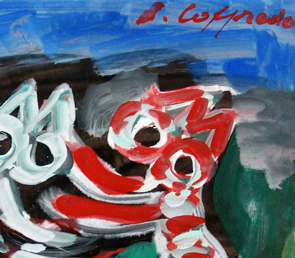 Silvio Loffredo 1920, Parigi (Francia) - 2013, Trebiano (Sp) - [Italia] Gatti olio su carta 50x50 cm firma dell'artista in alto a destra e sul retro; opera con cornice certificato di autenticità dell’artista su fotografia