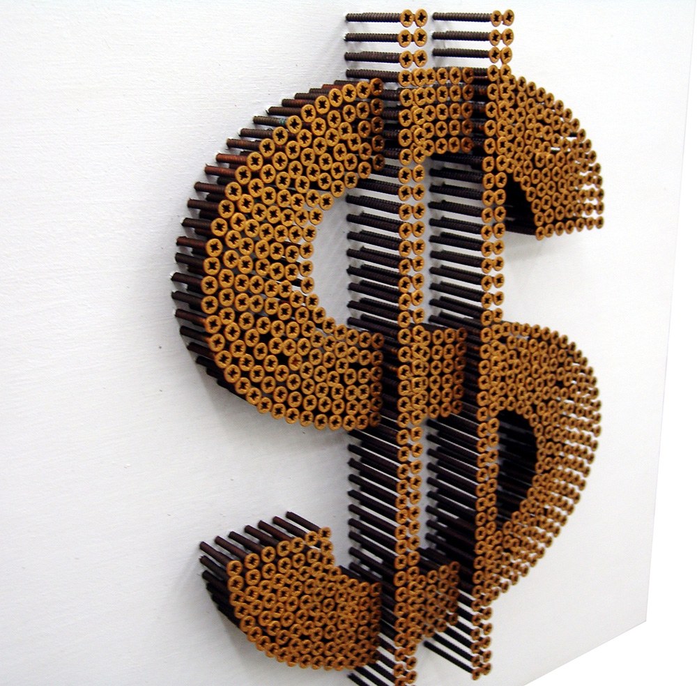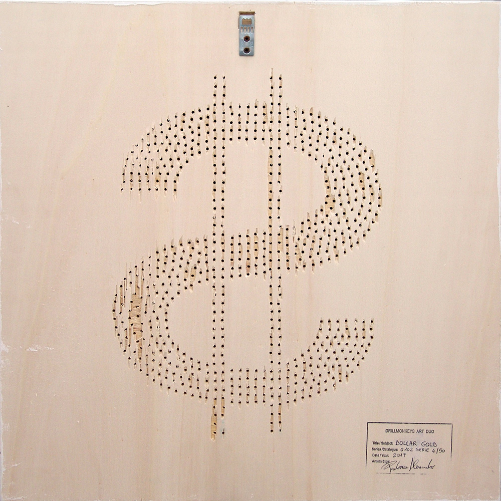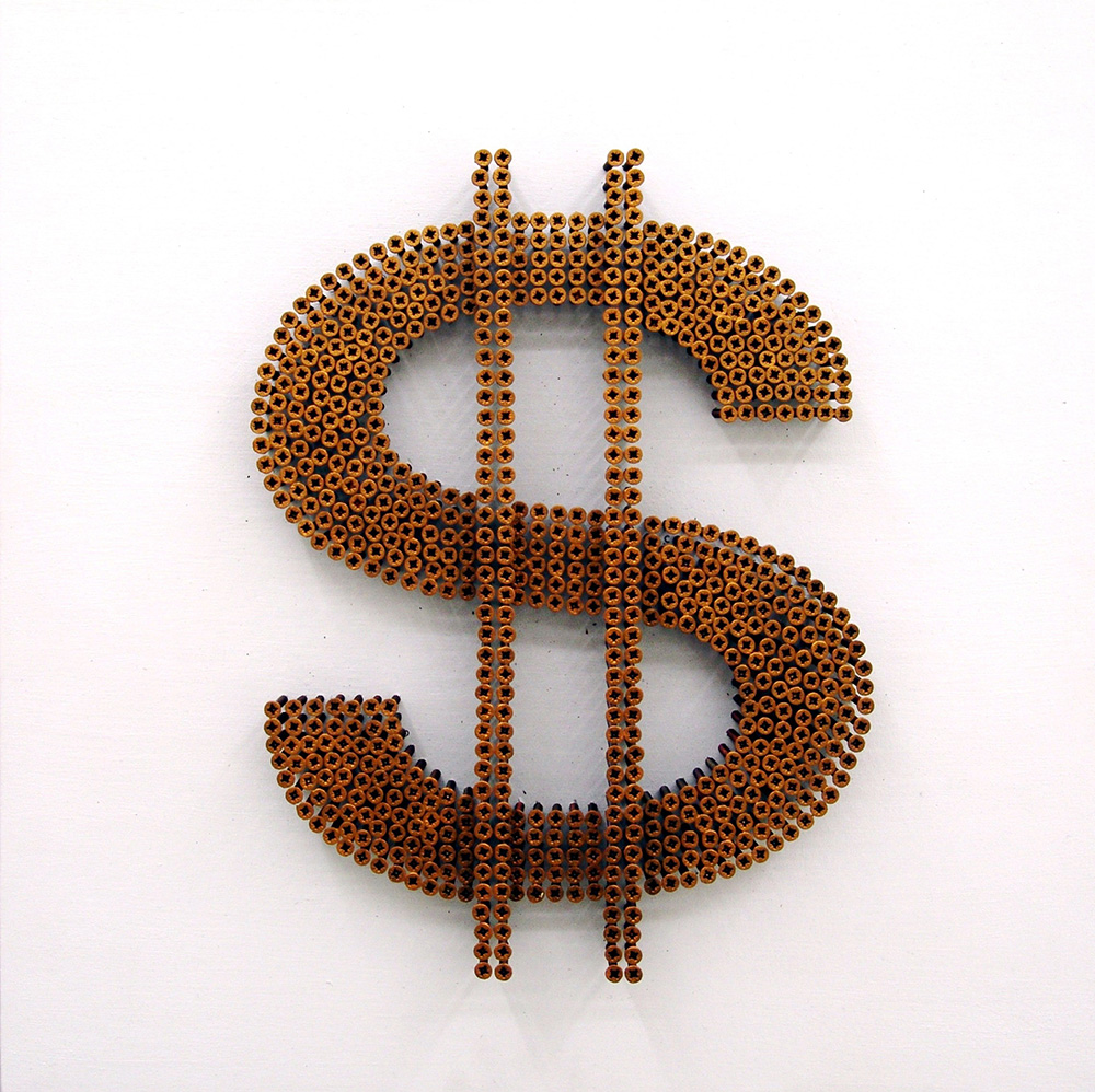 Alessandro Padovan 1983, Borgomanero (No) - [Italia] Dollar gold acrilico e viti su tavola 50x50 cm 2017 es. 4/50; firma dell’artista sul retro certificato di autenticità firmato dall’artista