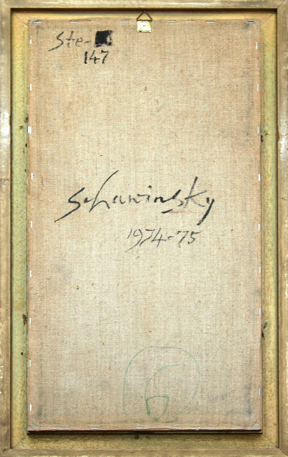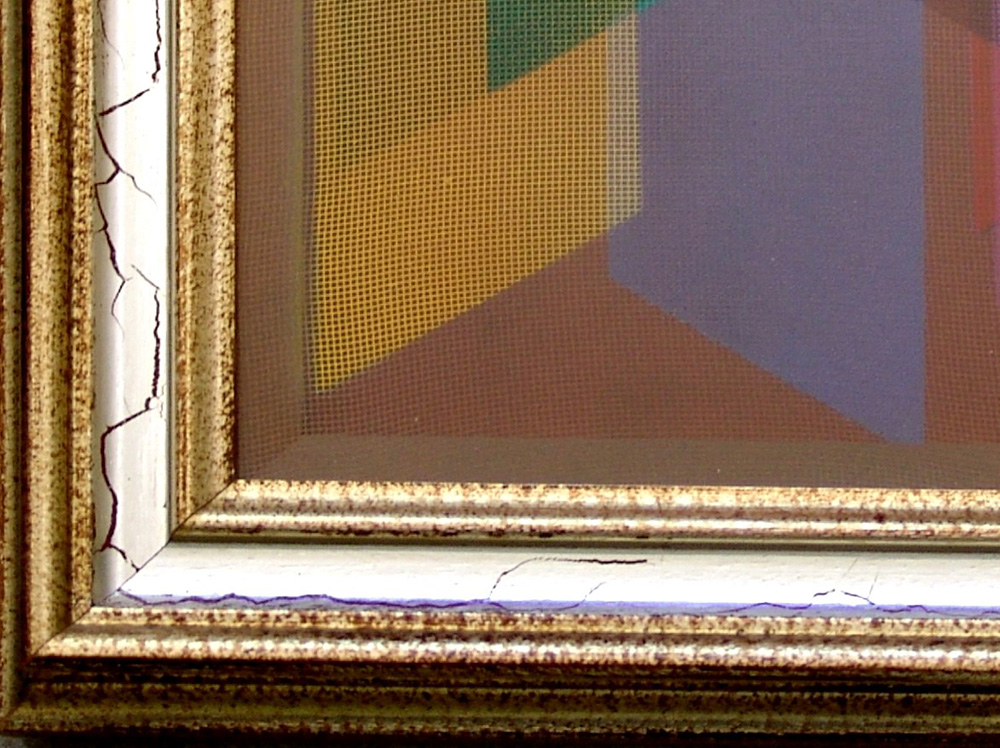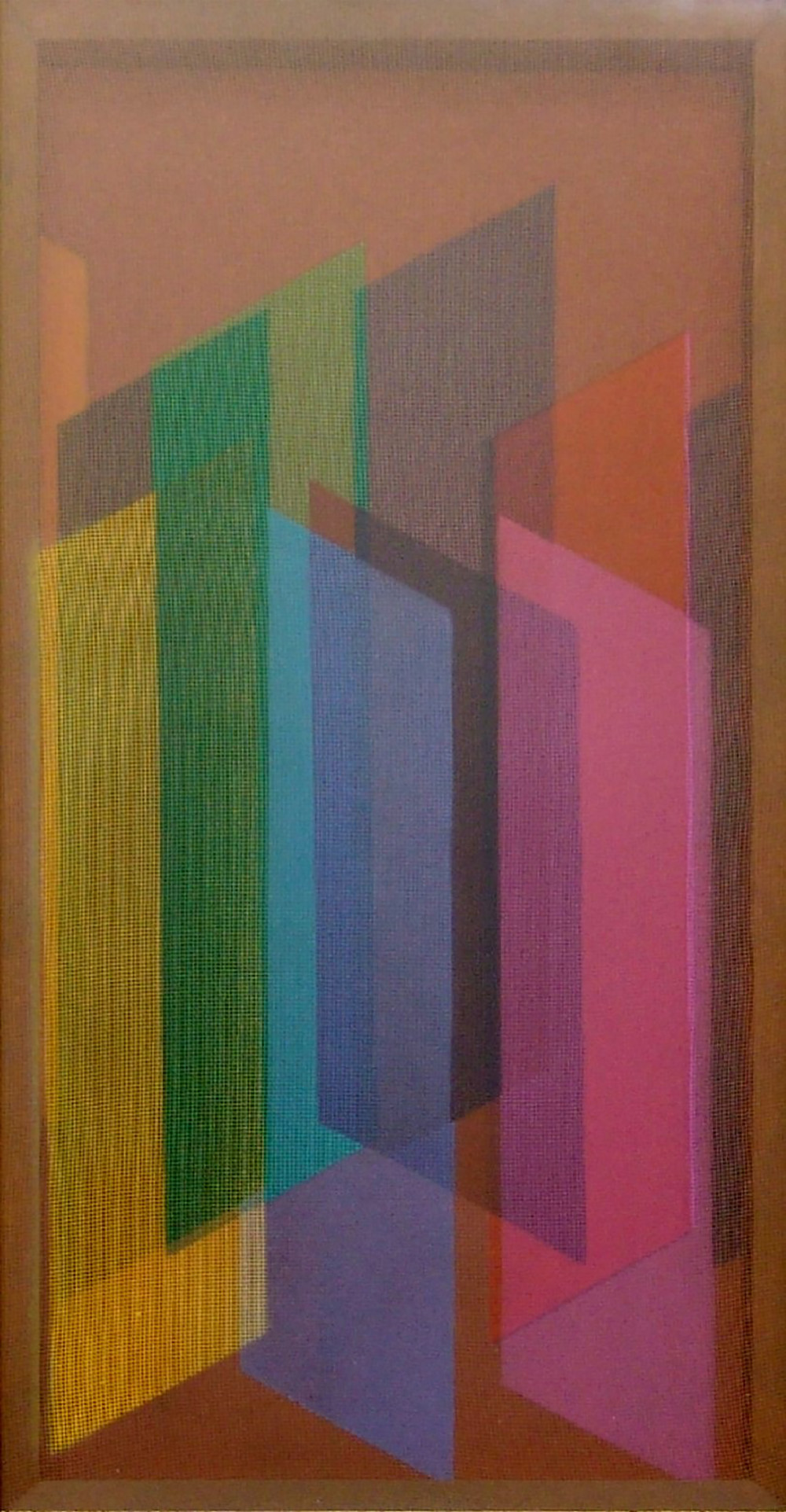 Xanti Schawinsky 1904, Basilea (Svizzera) - 1979, Locarno (Svizzera) - [Svizzera] STE-147 pittura su tulle e tavola 51x26 cm 1974/1975 firma dell'artista sul retro; opera con cornice certificato di autenticità Gisela Schawinsky