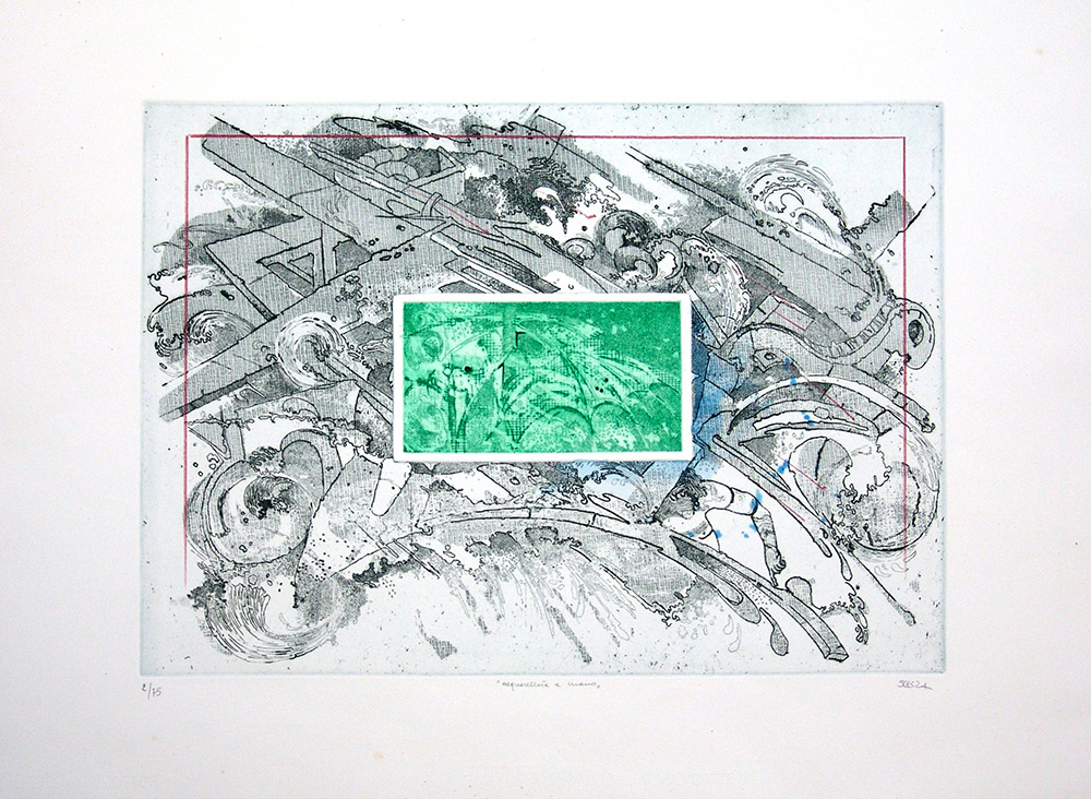 Italo Scelza 1939, Avellino (Av) - 2012, Supino (Fr) - [Italia] senza titolo acquaforte acquerellata a mano 56x76 cm es. 2/75; firma dell’artista in basso a destra certificato di autenticità Picenum