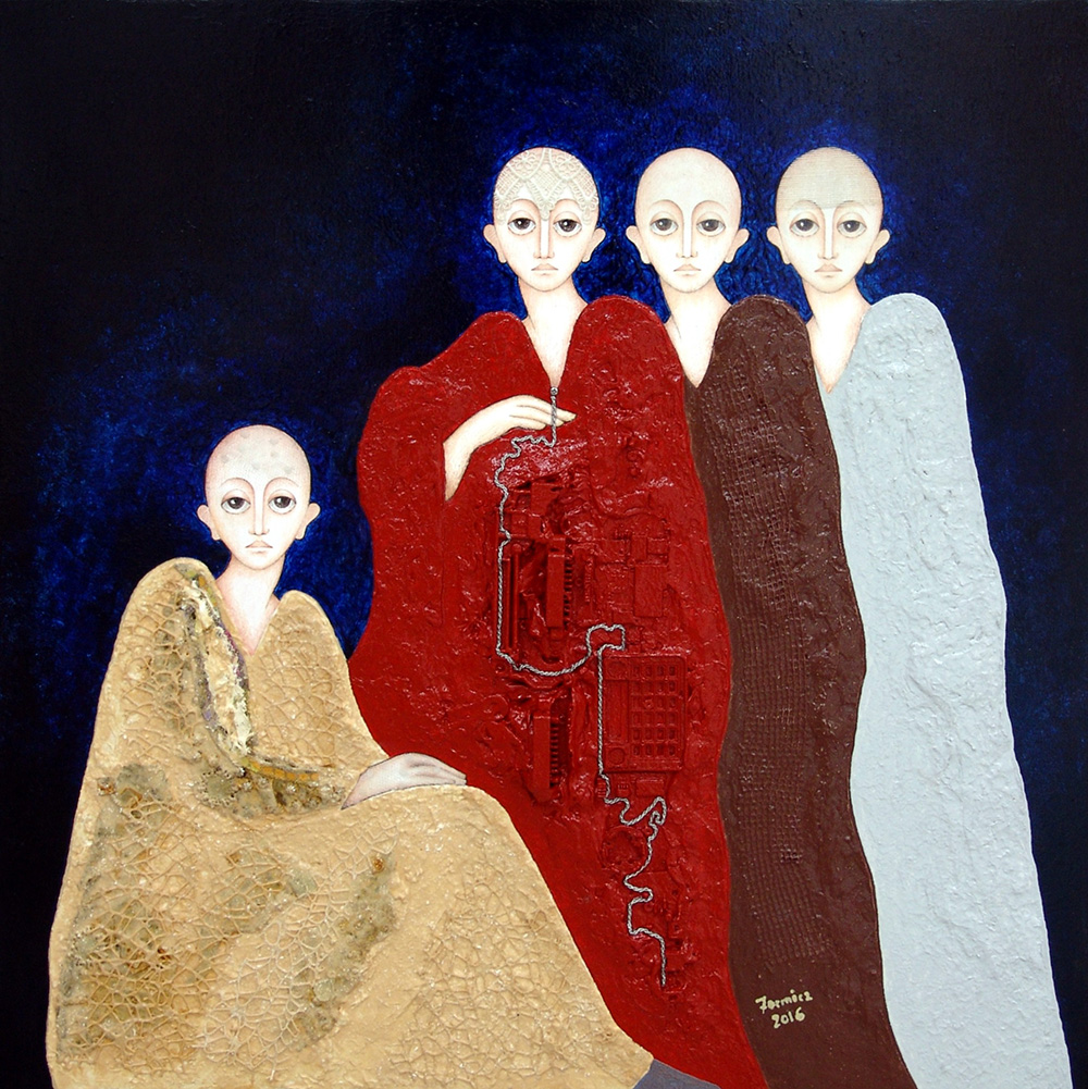 Mario Formica 1948, Chiaravalle (An) - [Italia] Donne, dee tecnica mista su tavola 70x70 cm 2016 firma dell’artista in basso a destra certificato di autenticità firmato dall’artista