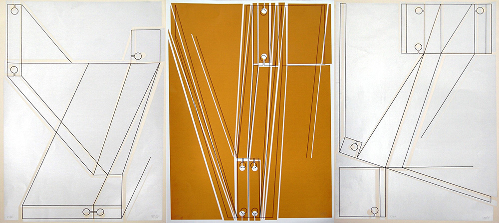 Michelangelo Conte 1933, Spalato (Croazia) - 1996, Roma (Rm) - [Italia] Lo spazio come metodo serigrafia 50x35 cm cad. 1979 es. 7/50; n. 3 serigrafie firmate a mano dall'artista; edizione Amici dell'Arte di Macerata a cura di Elverio Maurizi certificato di autenticità Picenum