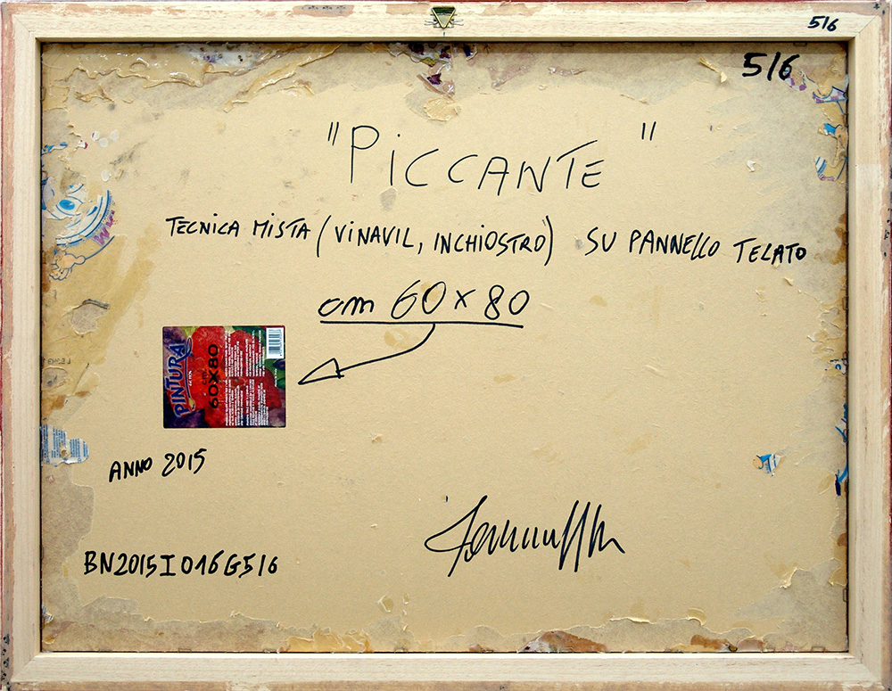 Gianluca Iannuzzi 1975, Benevento (Bn) - [Italia] Piccante tecnica mista su tela applicata su tavola 60x80 cm 2015 firma dell’artista sul retro; opera con cornice certificato di autenticità firmato dall’artista