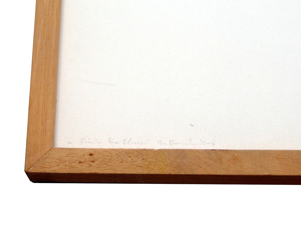 Gino de Dominicis 1947, Ancona (An) - 1998, Roma (Rm) - [Italia] senza titolo serigrafia 70x70 cm 1972 non numerato, tiratura 100 esemplari; firma dell’artista e dedica a Sirio Bellucci in basso a sinistra; opera con cornice certificato di autenticità Picenum; opera pubblicata nel catalogo ragionato "Gino de Dominicis" ed. Skira a cura di Italo Tomassoni