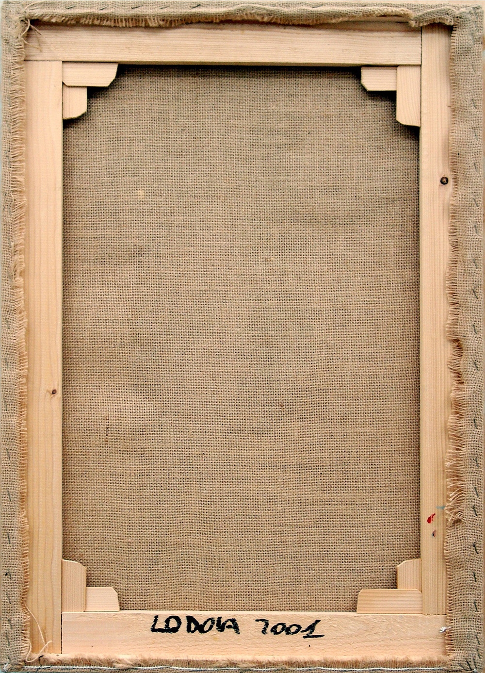 Marco Lodola 1955, Dorno (Pv) - [Italia] senza titolo tecnica mista su juta 70x50 cm 2001 firma dell’artista in basso a sinistra certificato di autenticità dell’artista su fotografia