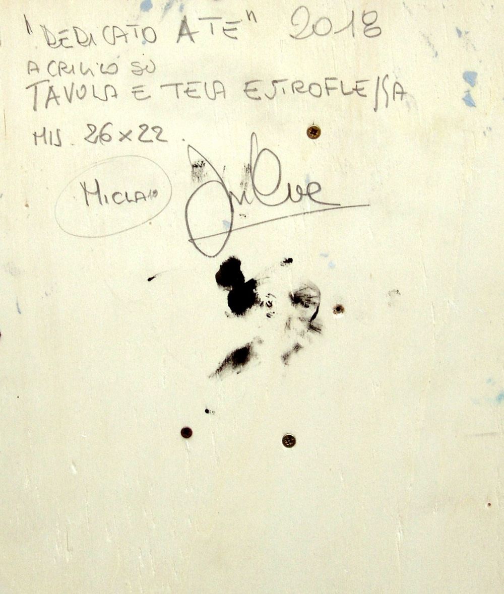 Micla 1961, Rovereto (Tn) - [Italia] Dedicato a te, opera portatile acrilico su tavola con tela estroflessa 26x22 cm 2018 firma dell'artista sul retro; opera con cornice certificato di autenticità dell’artista su fotografia