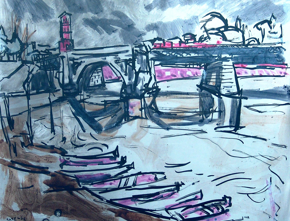 Angelo Savelli 1911, Pizzo (Vv) - 1995, Brescia (Bs) - [Italia] senza titolo tecnica mista su carta 25x35 cm firma dell'artista in basso a sinistra; opera con cornice certificato di autenticità Picenum