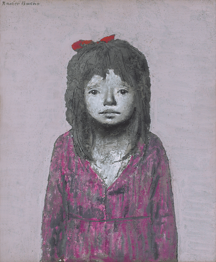 XAVIER BUENO Vera De Bidasoa (Spagna) 1915 - Fiesole (Fi) 17/07/1979 Ragazza con il vestito rosso, 1966 olio e tecnica mista su tela cm. 46x38, firma in alto a sinistra e al retro, scheda di Proprietà e Provenienza delle Opere del Maestro Xavier Bueno a cura di Remo Giovanbattista Bianco allegata, pubblicato sul "Catalogo Generale delle Opere di Xavier Bueno", primo volume (1936-1979), Editoriale Giorgio Mondadori, pagina 144 (con tavola in bianco e nero) e pagina intera 156 (con tavola a colori).