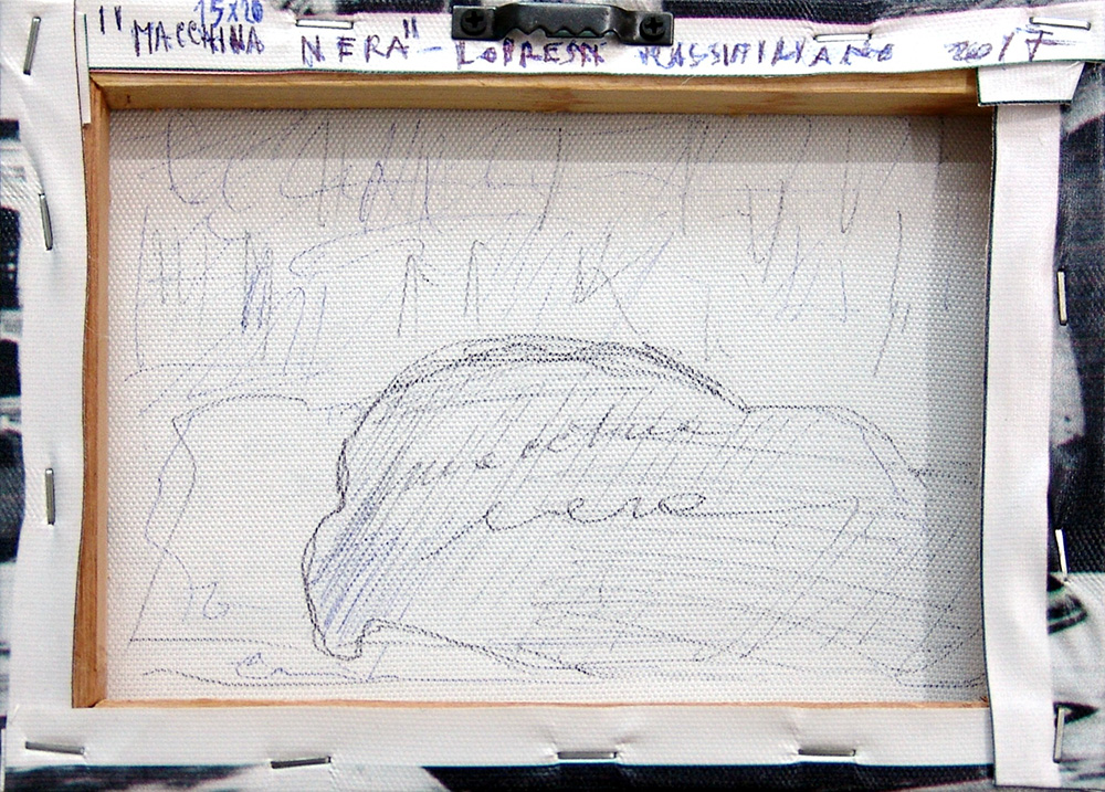 Massimiliano Lopresti 1971, Vibo Valentia (Vv) - [Italia] Macchina nera tecnica mista su tela 18x24 cm 2017 firma dell’artista sul retro certificato di autenticità firmato dall'artista