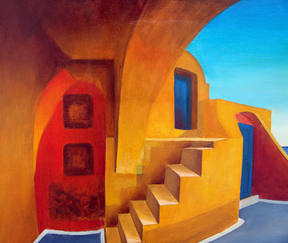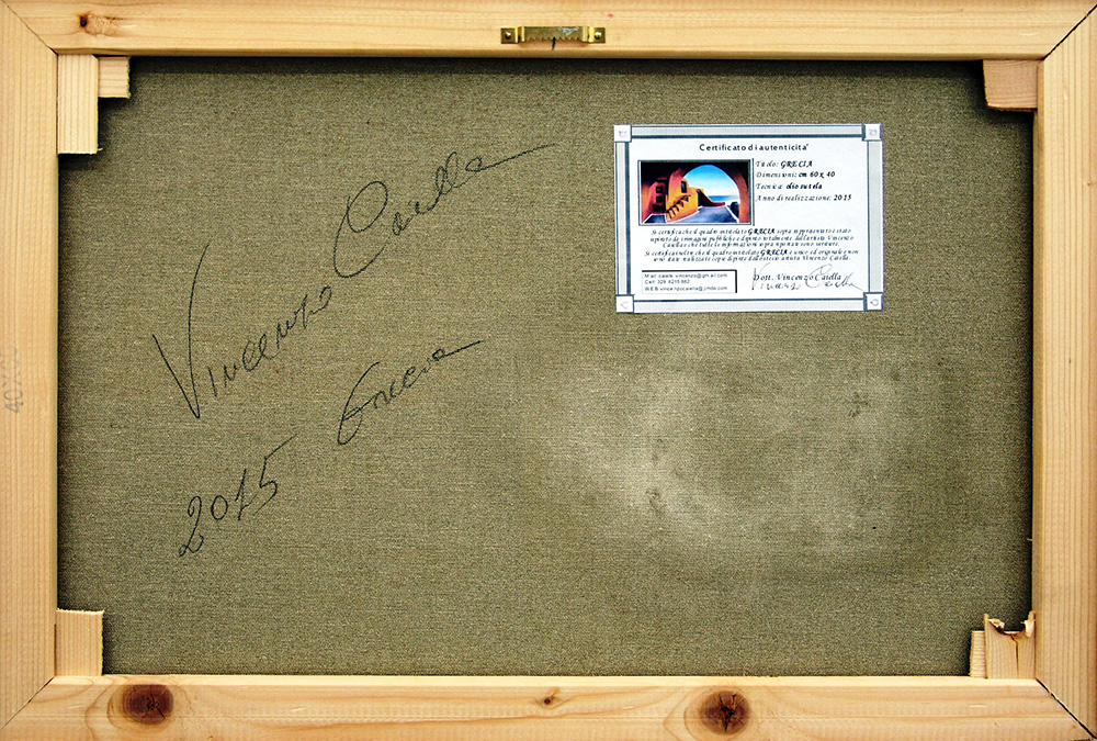 Vincenzo Caiella 1961, Mirabello Sannitico (Cb) - [Italia] Grecia olio su tela 40x60 cm 2015 firma dell’artista in basso a destra e sul retro; opera con cornice certificato di autenticità firmato dall'artista