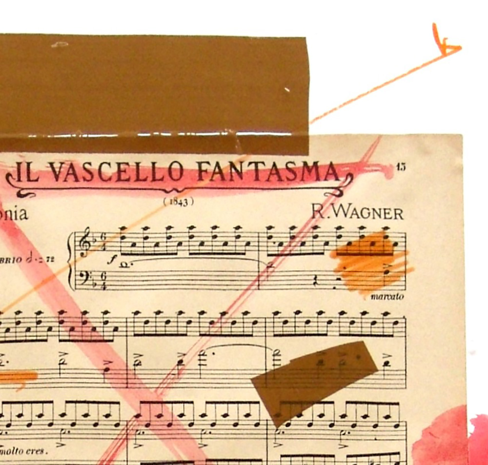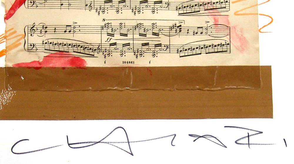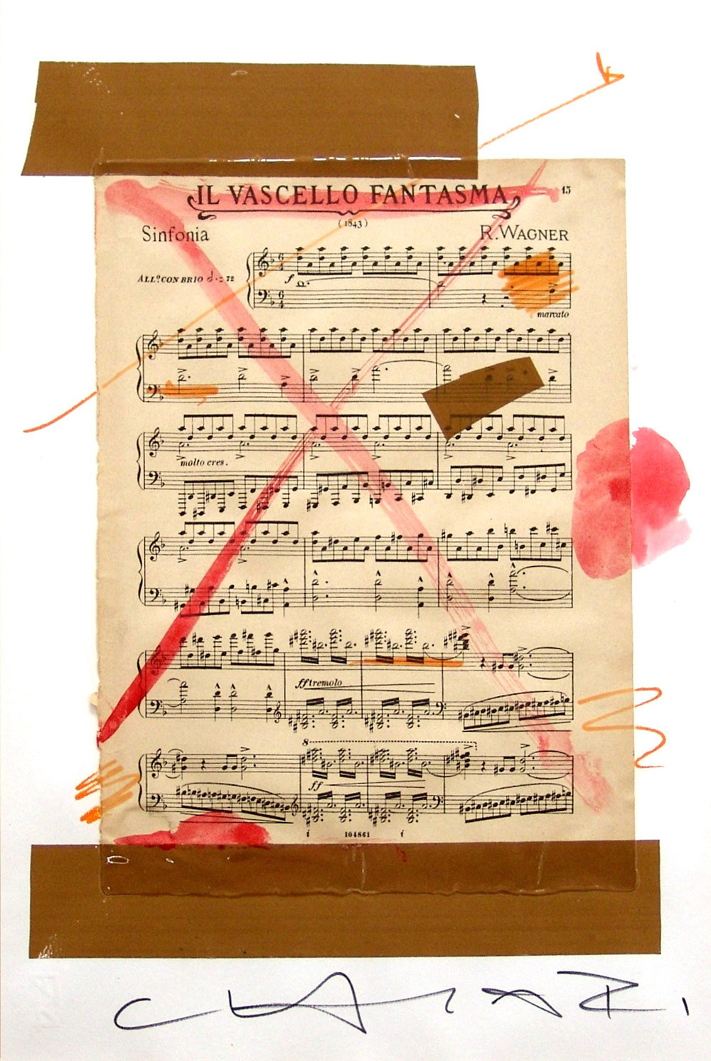 Giuseppe Chiari 1926, Firenze (Fi) - 2007, Firenze (Fi) - [Italia] Il vascello fantasma tecnica mista e collage su carta 46x31 cm firma dell'artista in basso al centro; opera con cornice certificato di autenticità dell’artista su fotografia