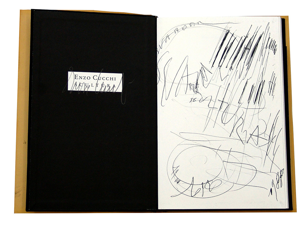 Enzo Cucchi 1949, Morro d'Alba (An) - [Italia] Scultura 1982-1988 libro 27x18 cm 1988 es. 170/500; firma dell’artista all'interno della copertina; a cura di Martin Schwander certificato di autenticità Picenum