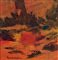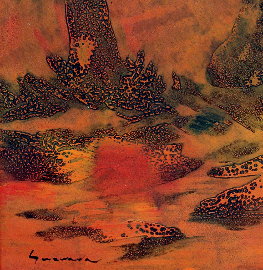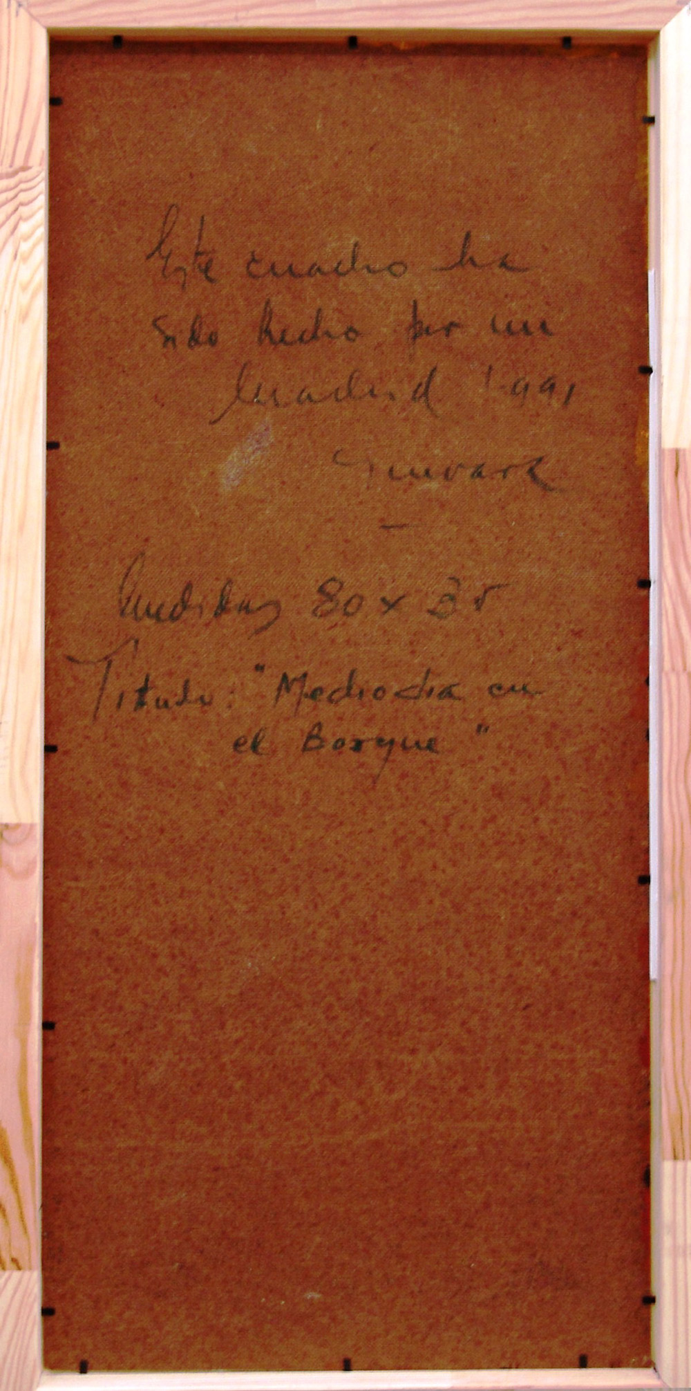 Jose Guevara 1926, Huelva (Spagna) - 2010, Huelva (Spagna) - [Spagna] Mediodia en el bosque olio su faesite 80x35 cm 1991 firma dell'artista in basso a sinistra e sul retro; opera con cornice certificato di autenticità del prof. Armando Ginesi