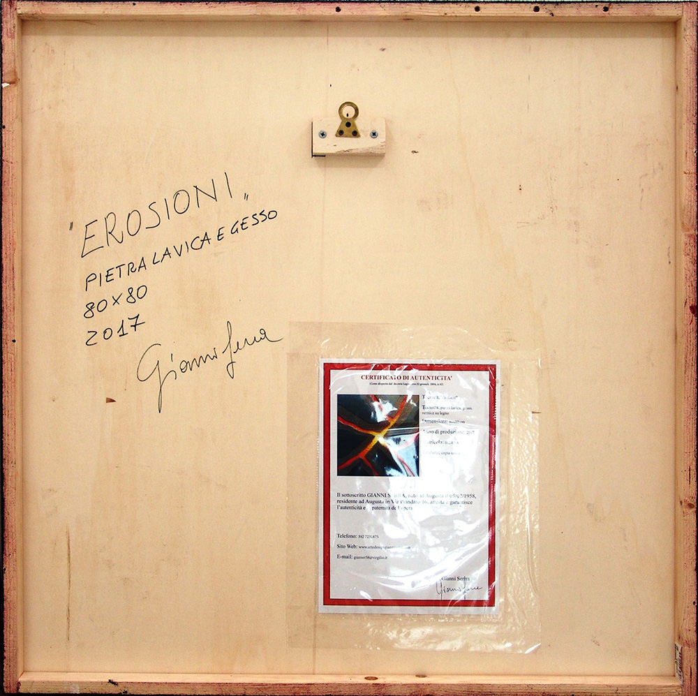 Gianni Serra 1958, Augusta (Sr) - [Italia] Erosioni pietra lavica e gesso su legno 80x80 cm 2017 firma dell'artista sul retro certificato di autenticità firmato dall'artista