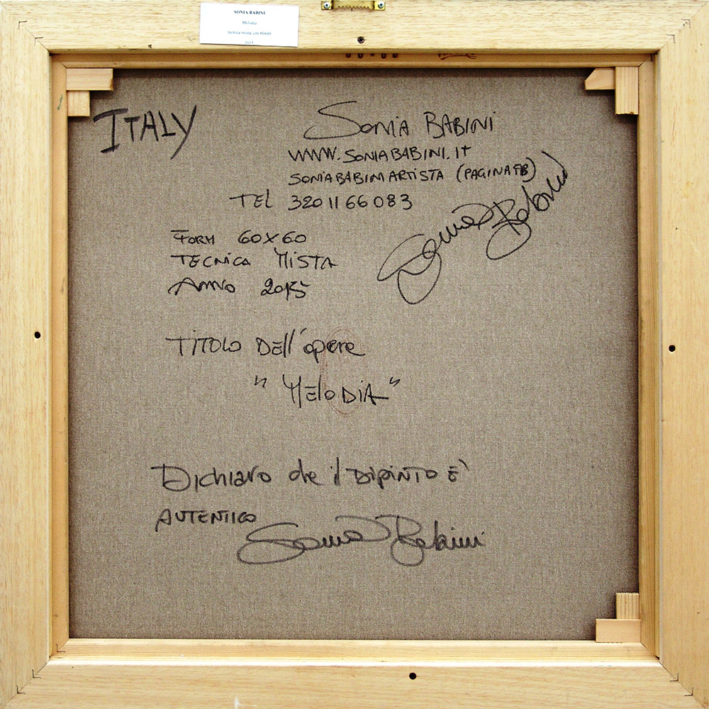 Sonia Babini 1971, Atri (Te) - [Italia] Melodia tecnica mista su tela 60x60 cm 2015 firma dell'artista a destra e sul retro; opera con cornice certificato di autenticità Picenum