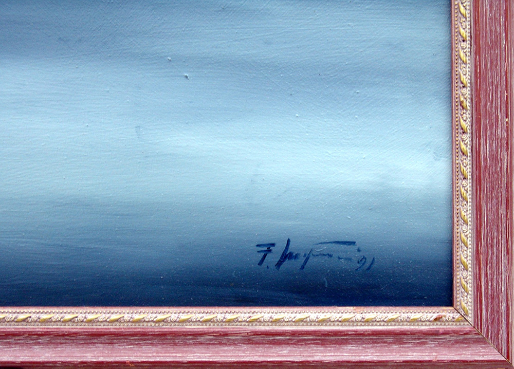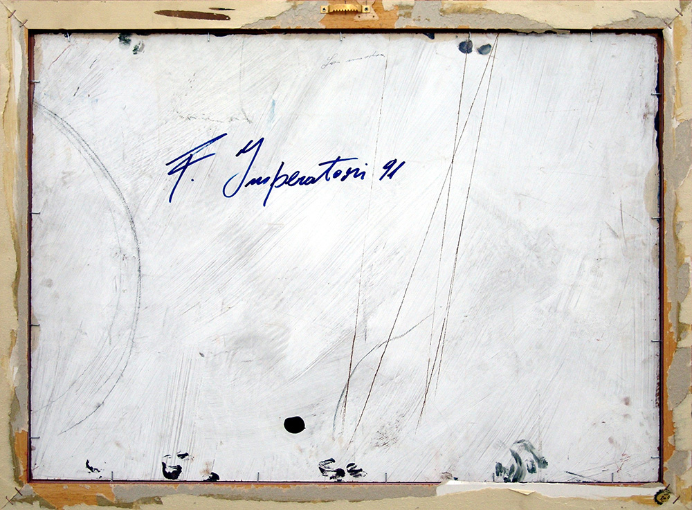 Fabio Imperatori 1957, Porto San Giorgio (Fm) - [Italia] senza titolo olio su tavola 50x70 cm 1991 firma dell’artista in basso a destra e sul retro; opera con cornice certificato di autenticità Picenum