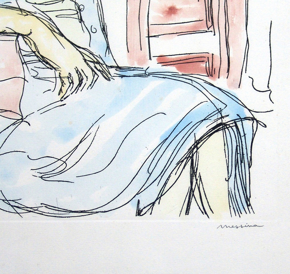 Francesco Messina 1900, Linguaglossa (Ct) - 1995, Milano (Mi) - [Italia] senza titolo acquaforte acquerellata a mano 70x50 cm es. 98/99; firma dell’artista in basso a destra; opera con cornice certificato di autenticità Picenum